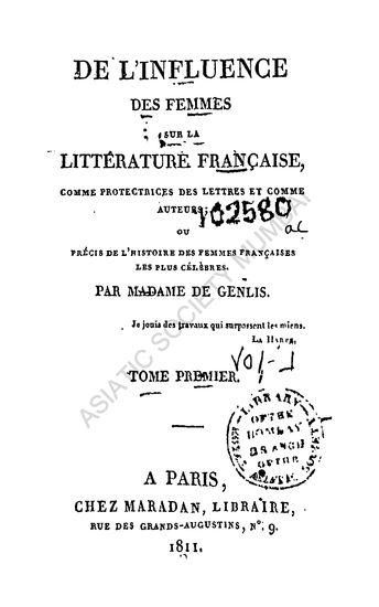 De L'influeuence Des Femmes Sur La Litterature Francaise in 50 Vols