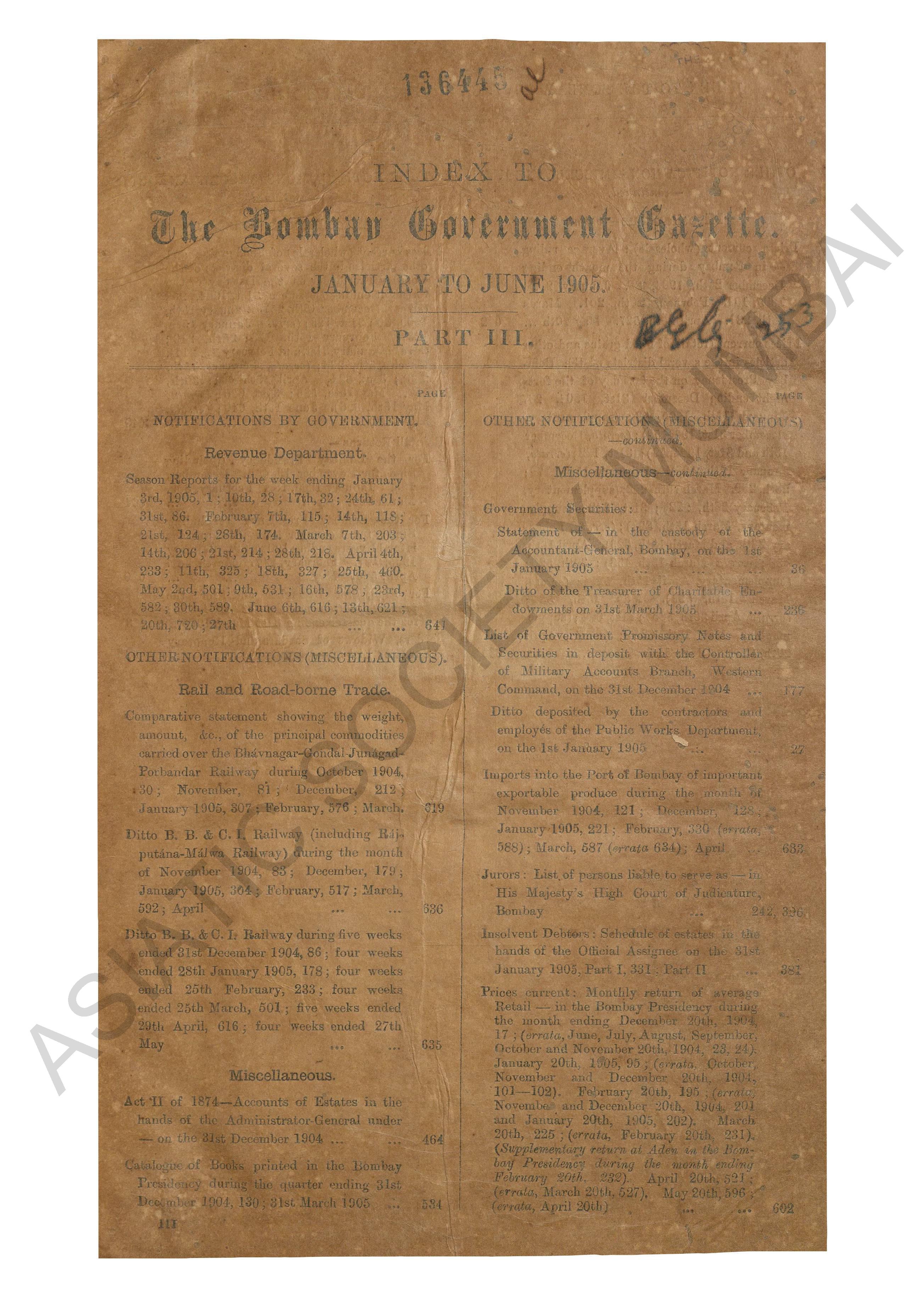 | Subject | : | Bombay (India : State) - periodicals, India - Bombay (state) |