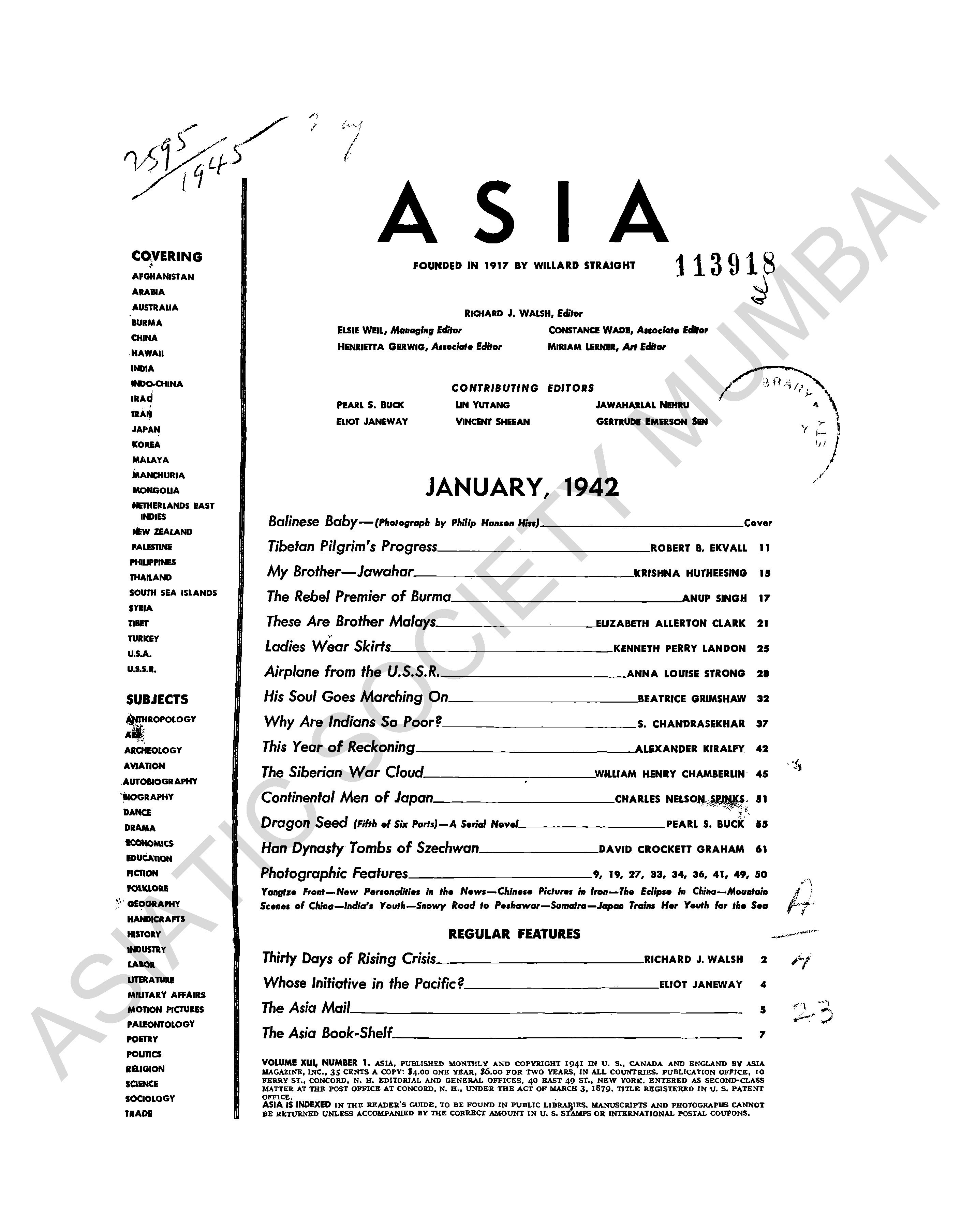| Subject | : | Asia-History- Perioicals; Asia-- Commerce--United State--Periodicals |