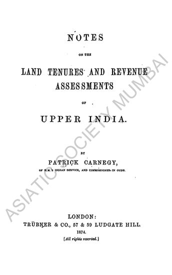 Notes on the Land Tenures and Revenue Assessments of Up ...