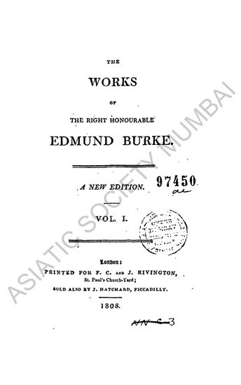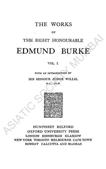 The Works of the Right Honourable Edmund Burke, Vol. I