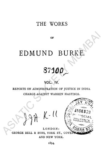 The Work of Edmund Burke, Vol. IV- Reports on Administr ...