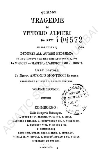 Quindici Tragedie di Vittorio Alfieri da Asti in tre vo ...