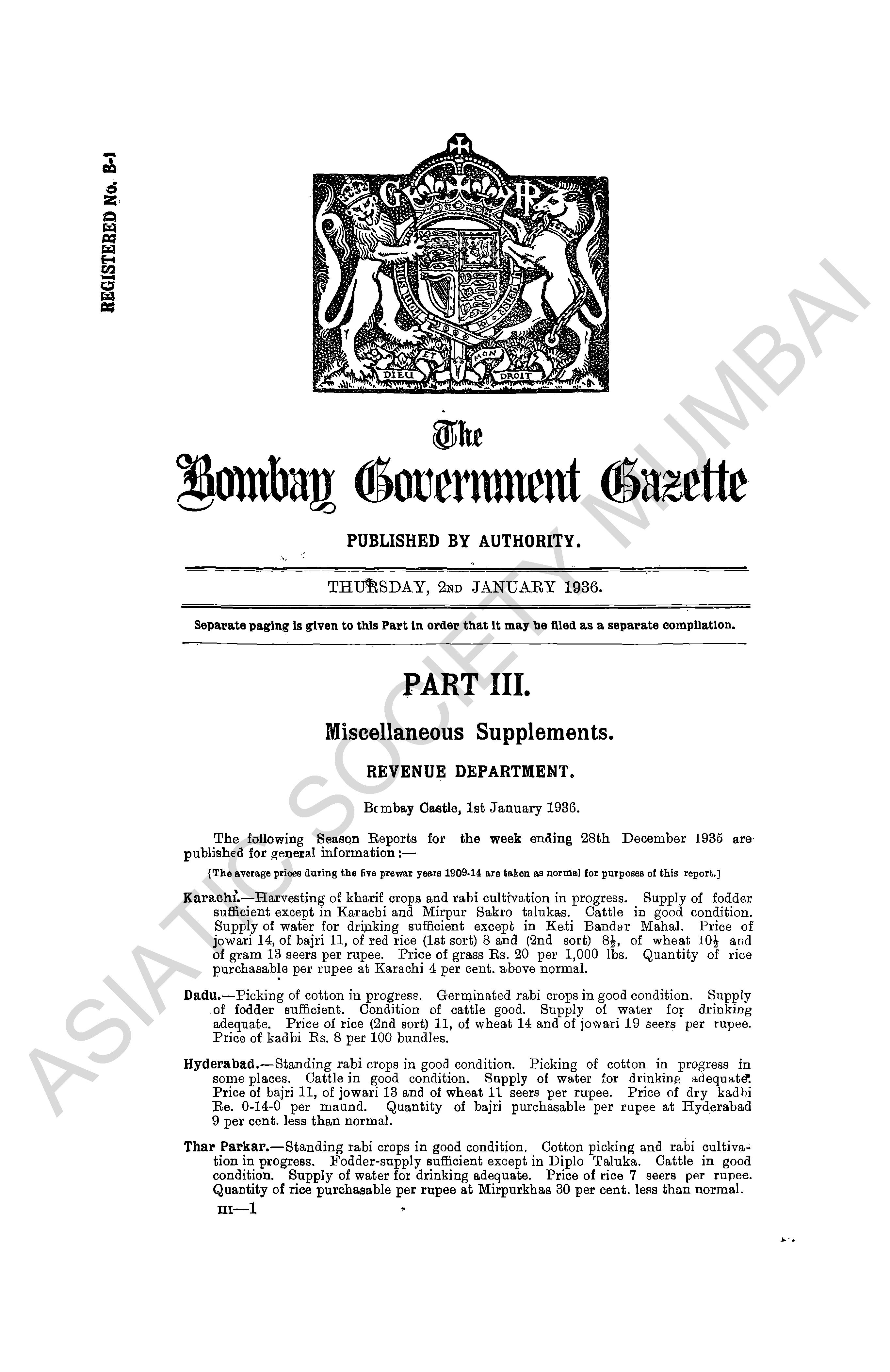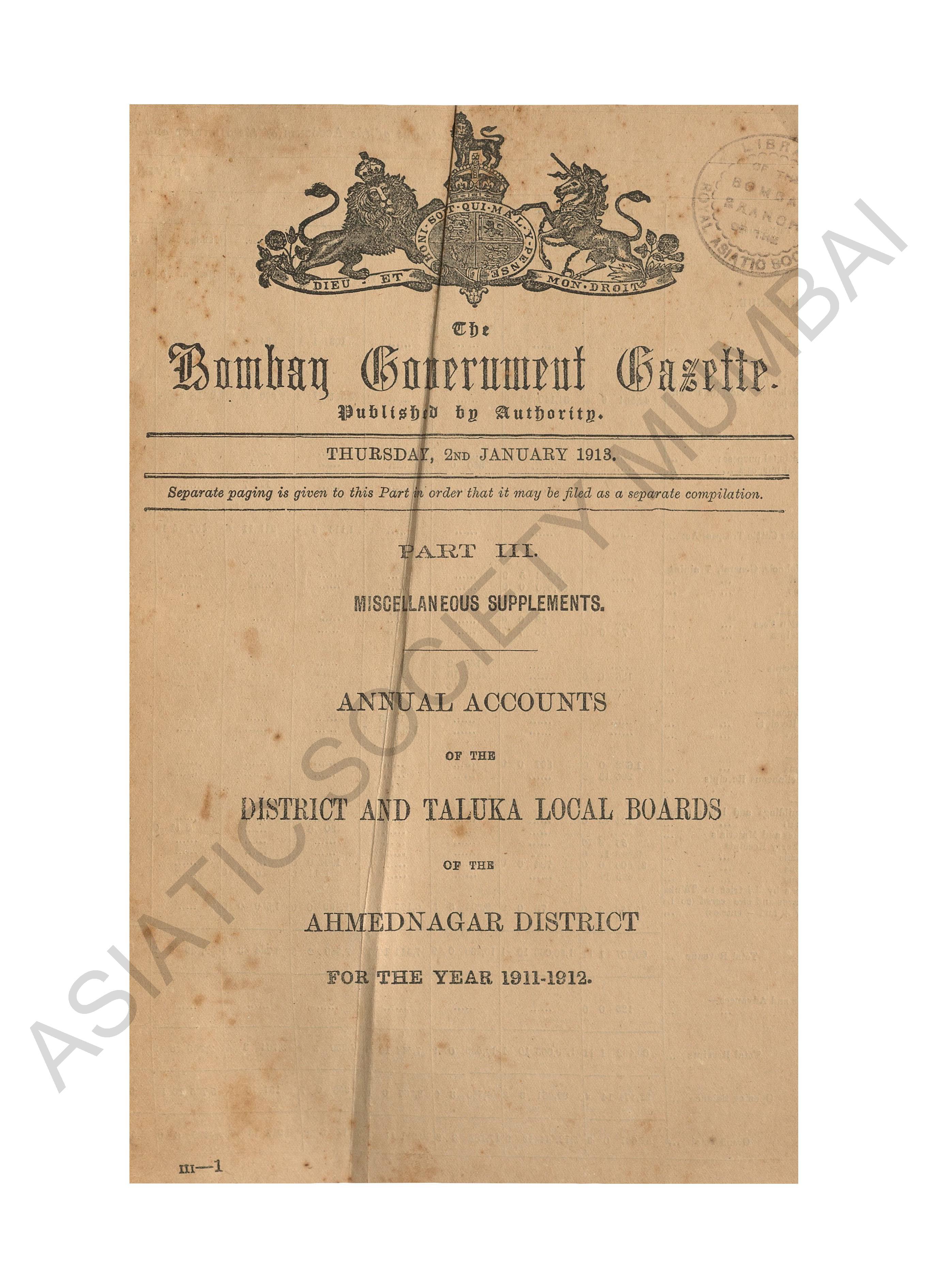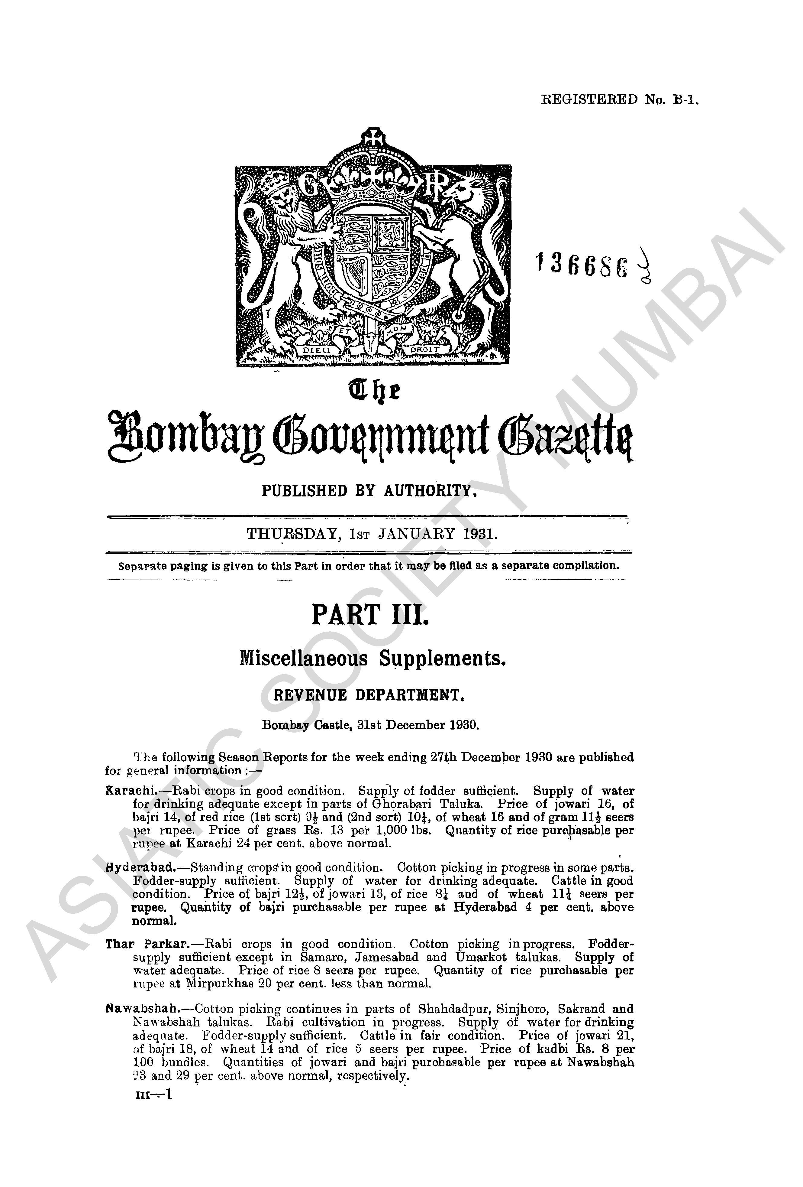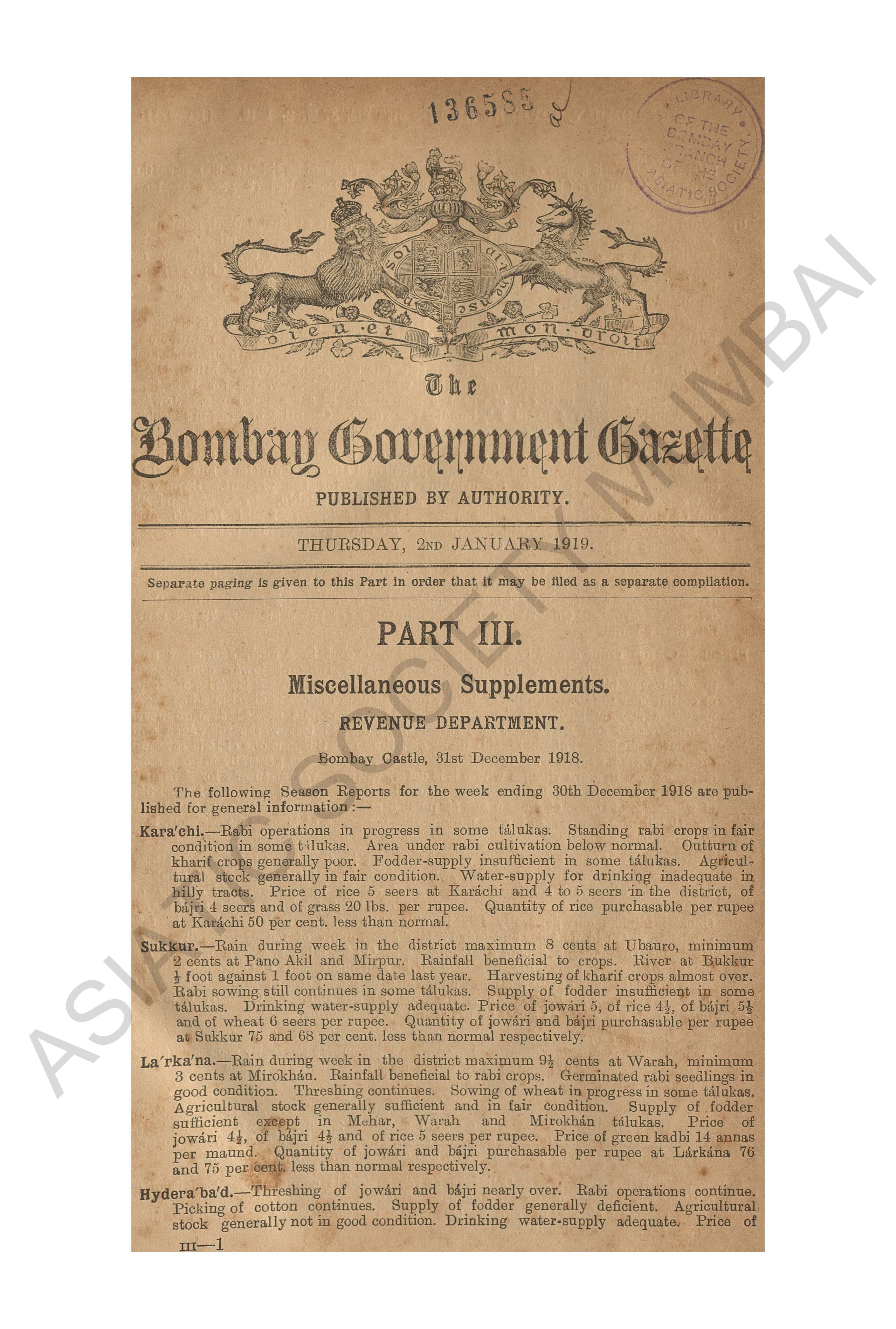 | Subject | : | Bombay (India : State) - periodicals, India - Bombay (state) |
