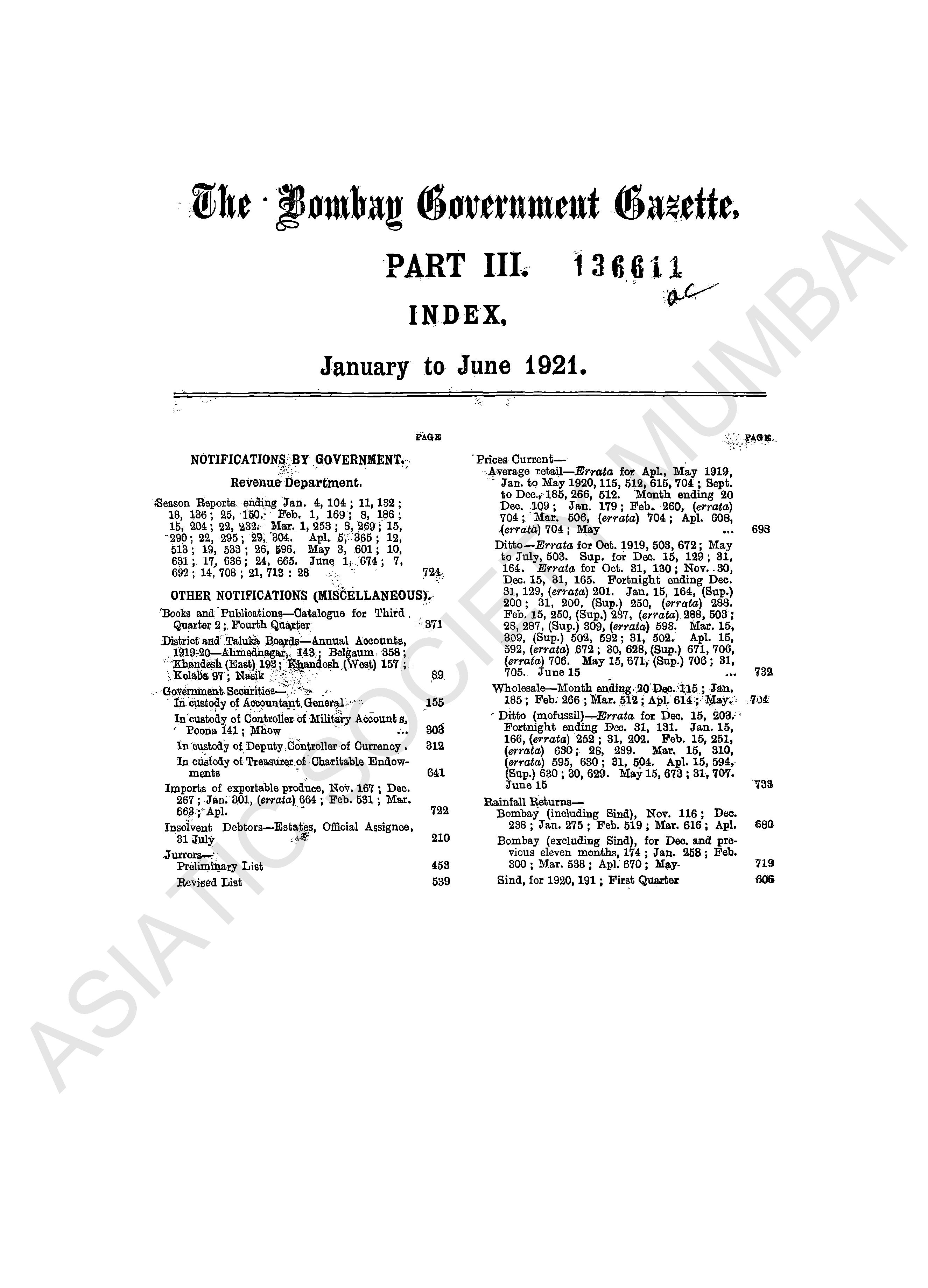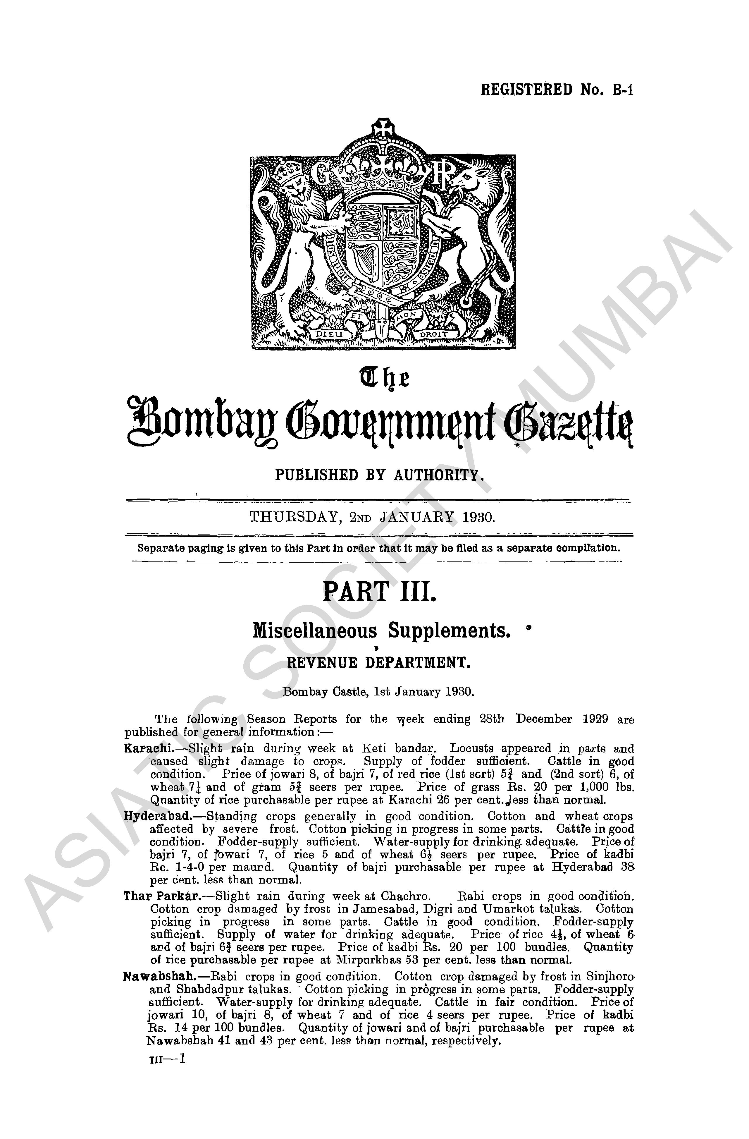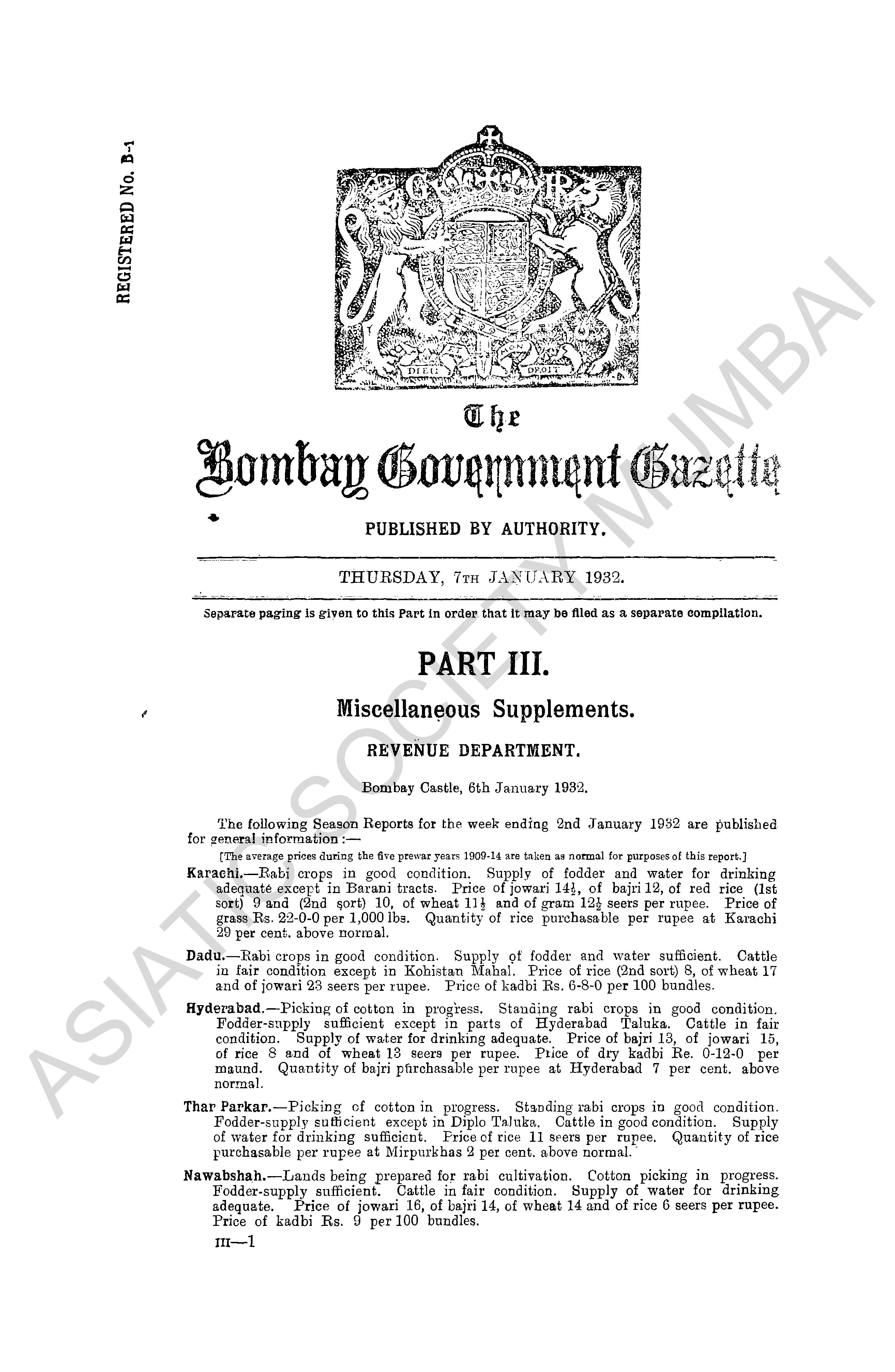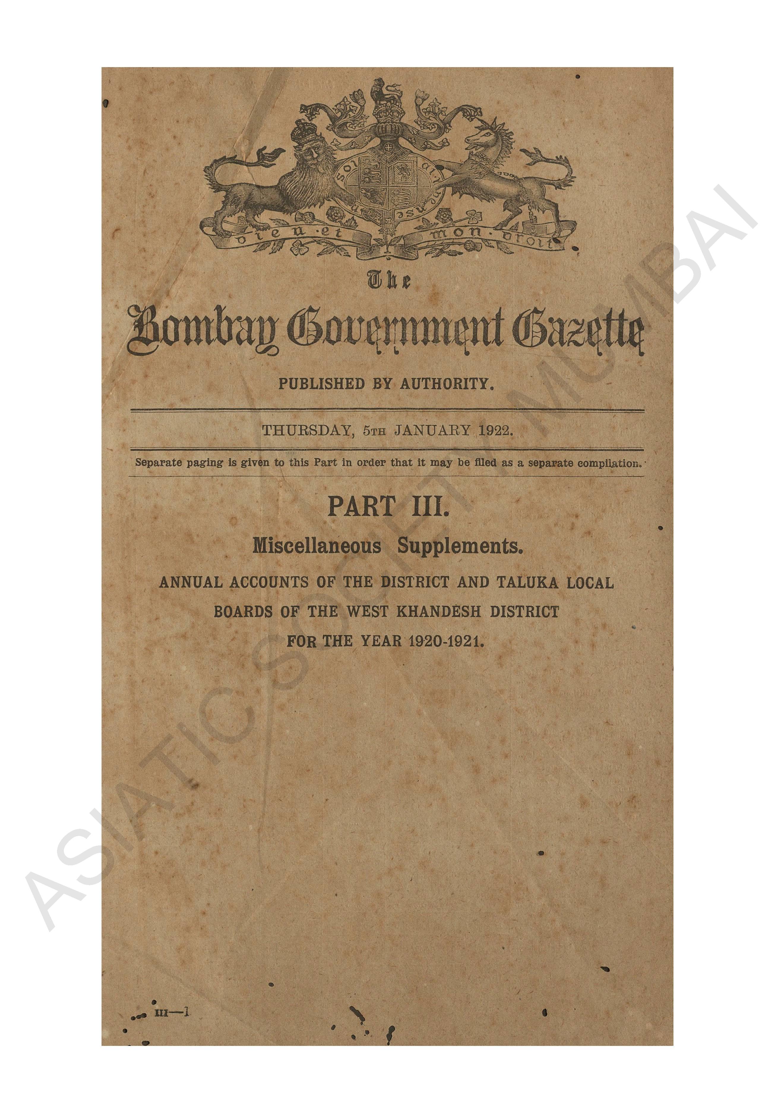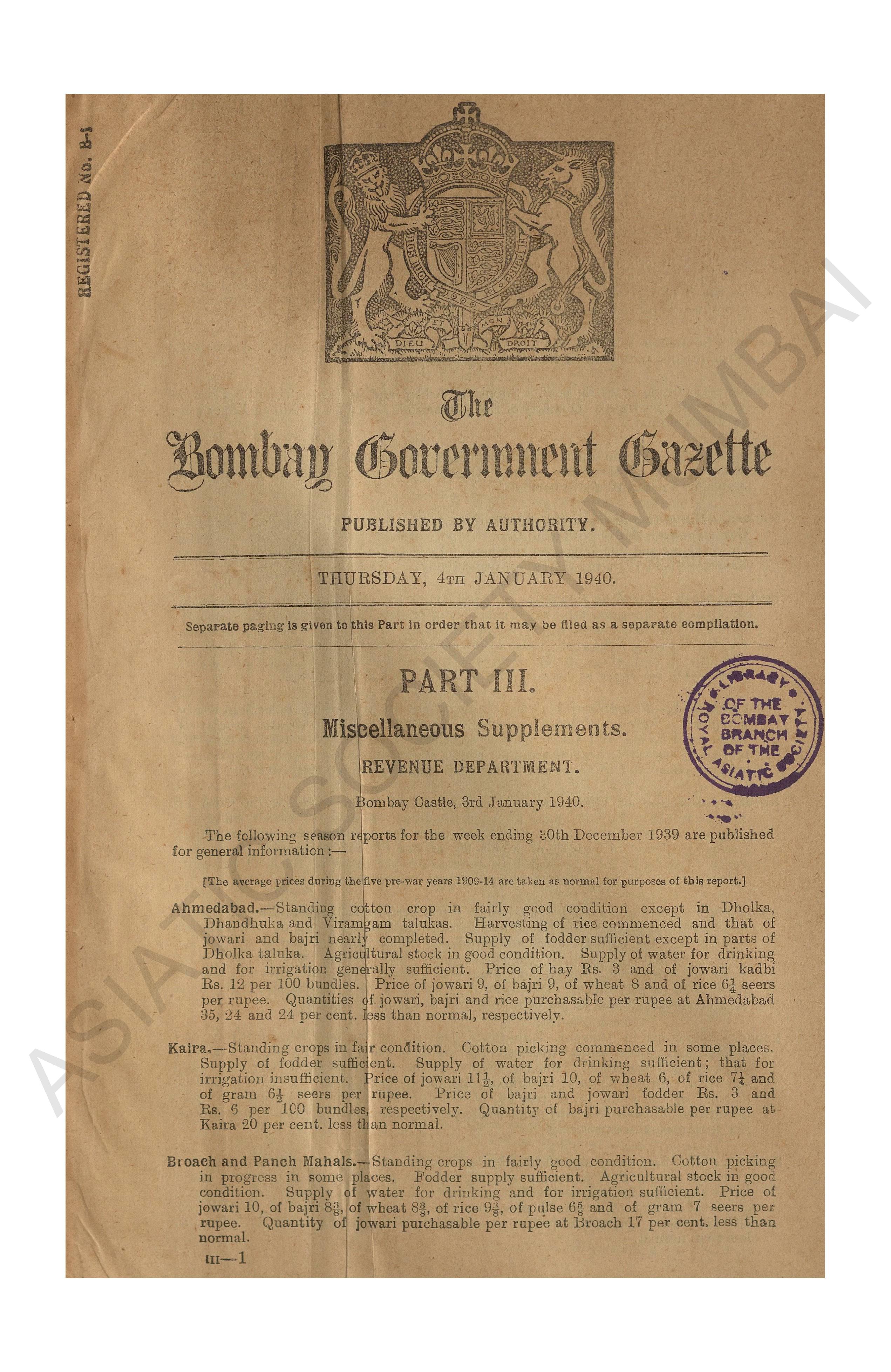 | Subject | : | Bombay (India : State) - periodicals, India - Bombay (state) |