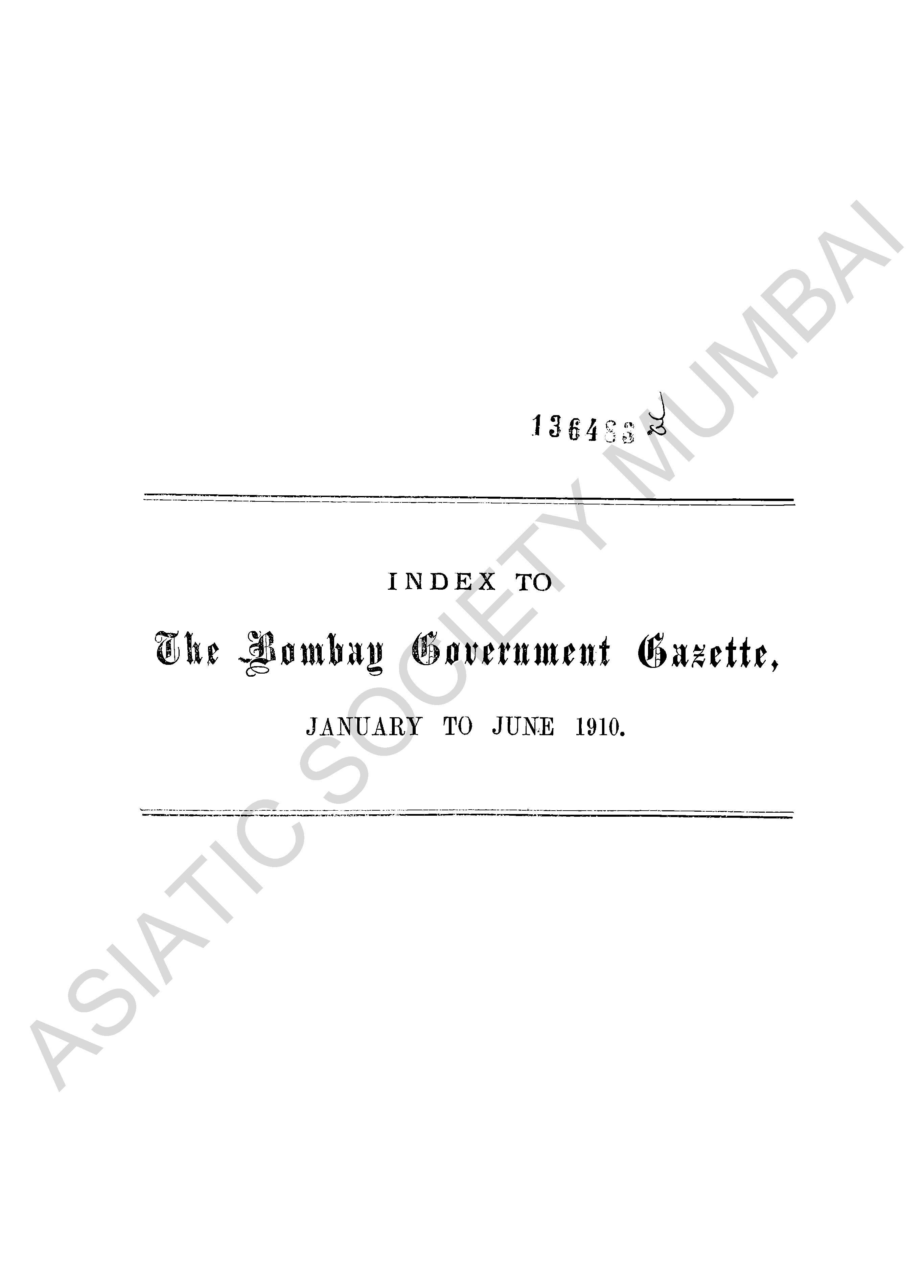 Bombay Government Gazette, Part IX, 1910.