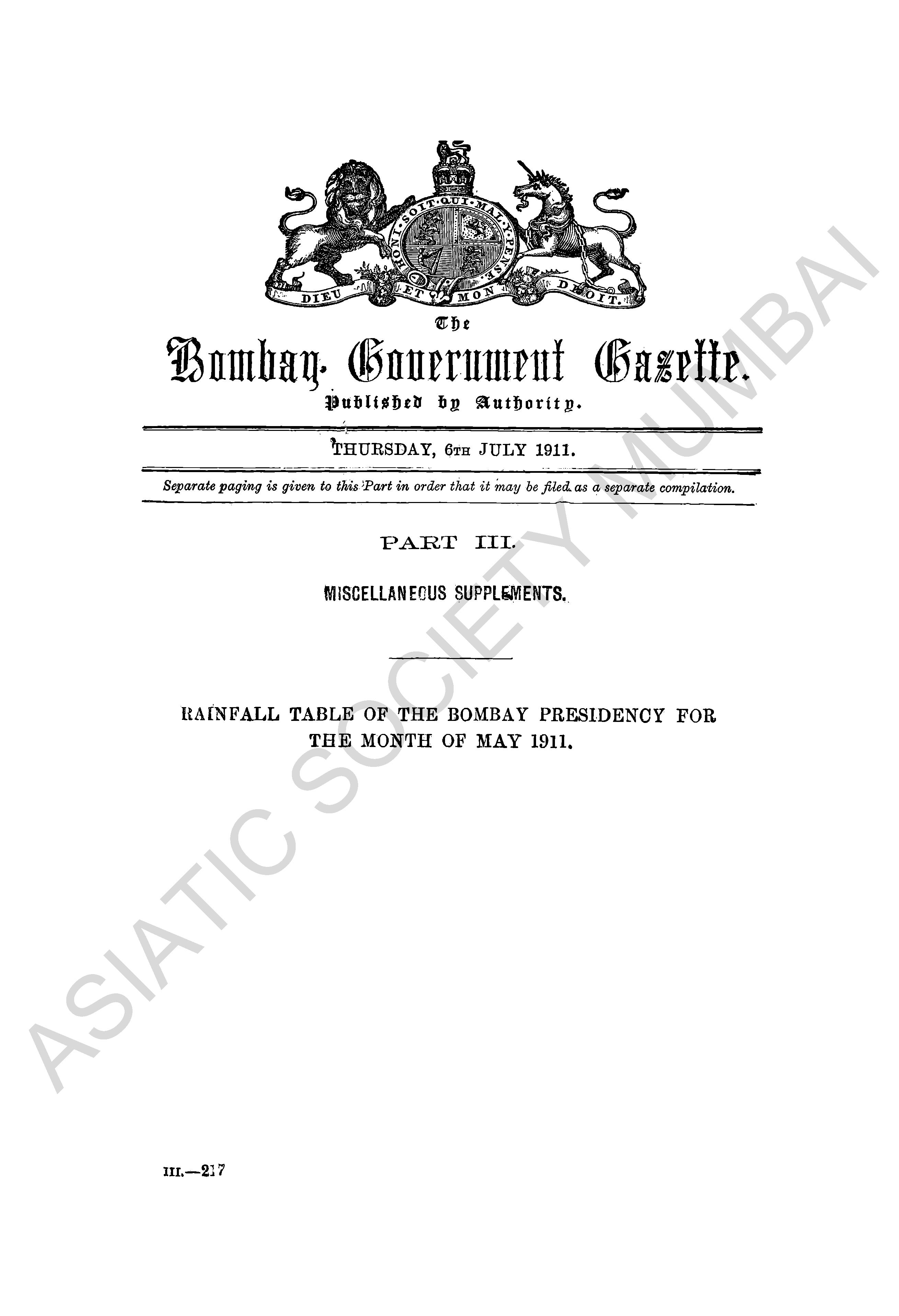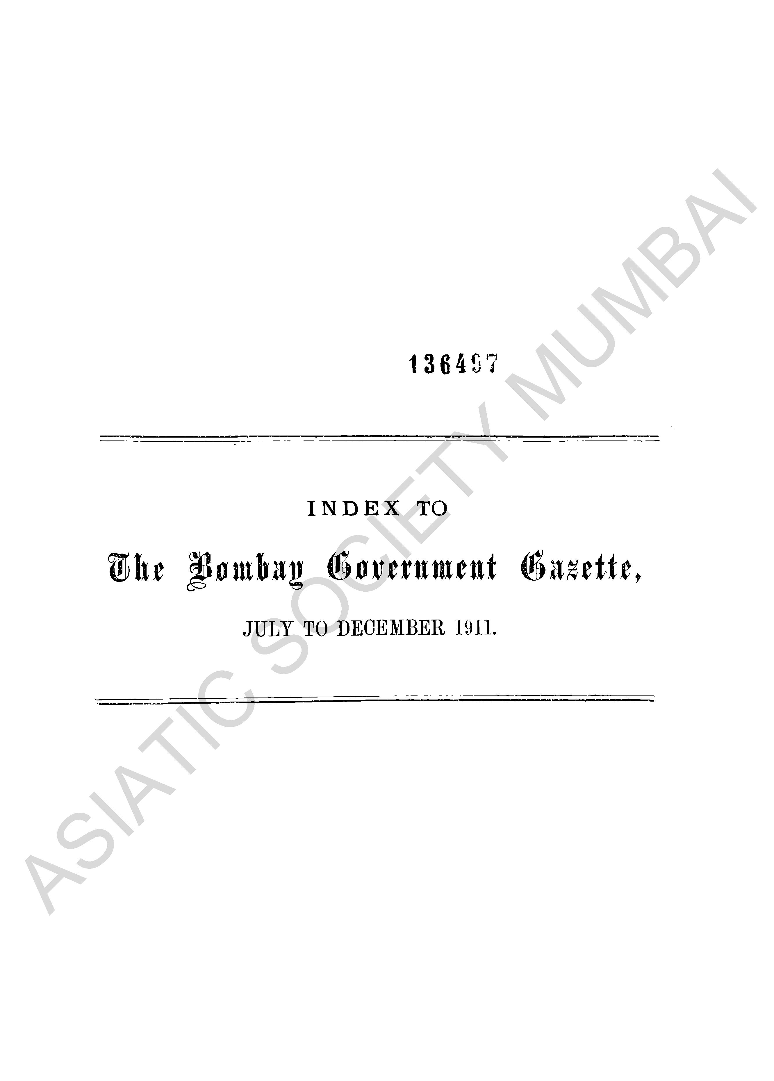 Bombay Government Gazette, July to December 1911.