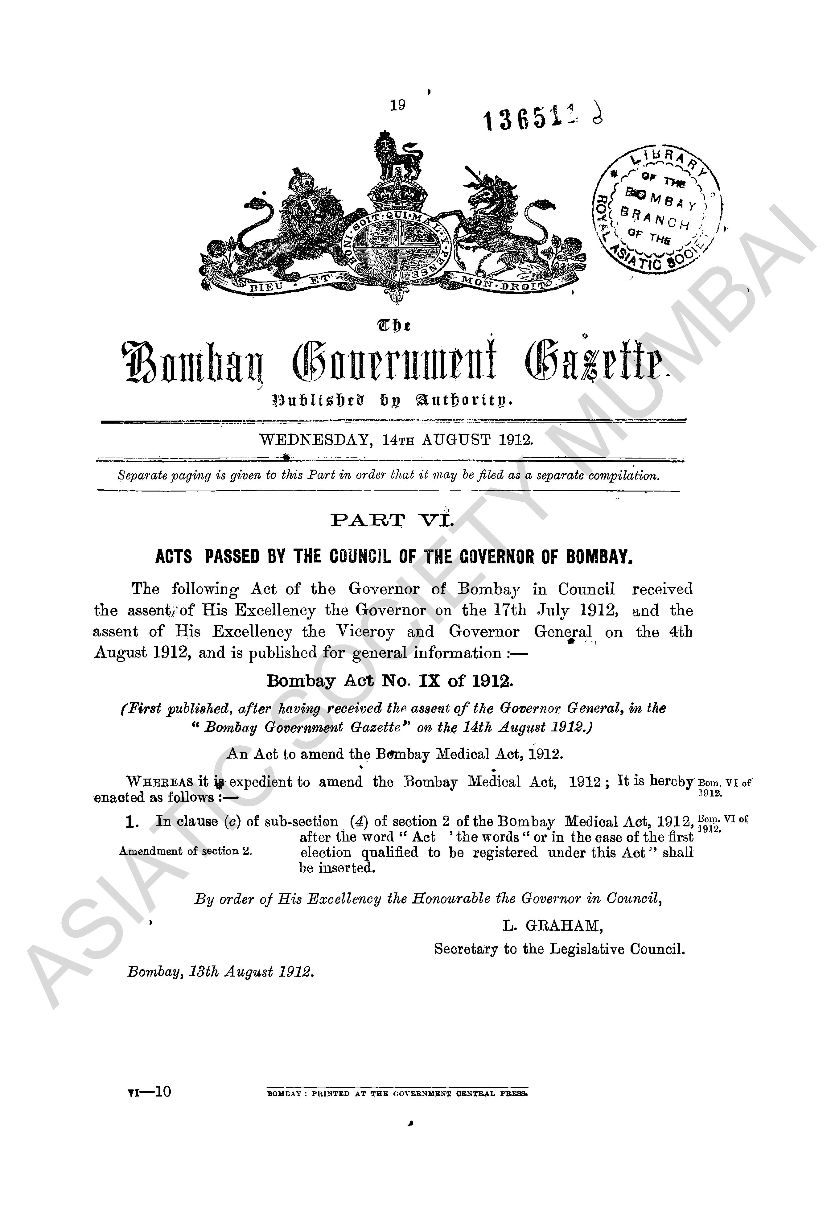 Bombay Government Gazette..., July to December 1912, Pa ...