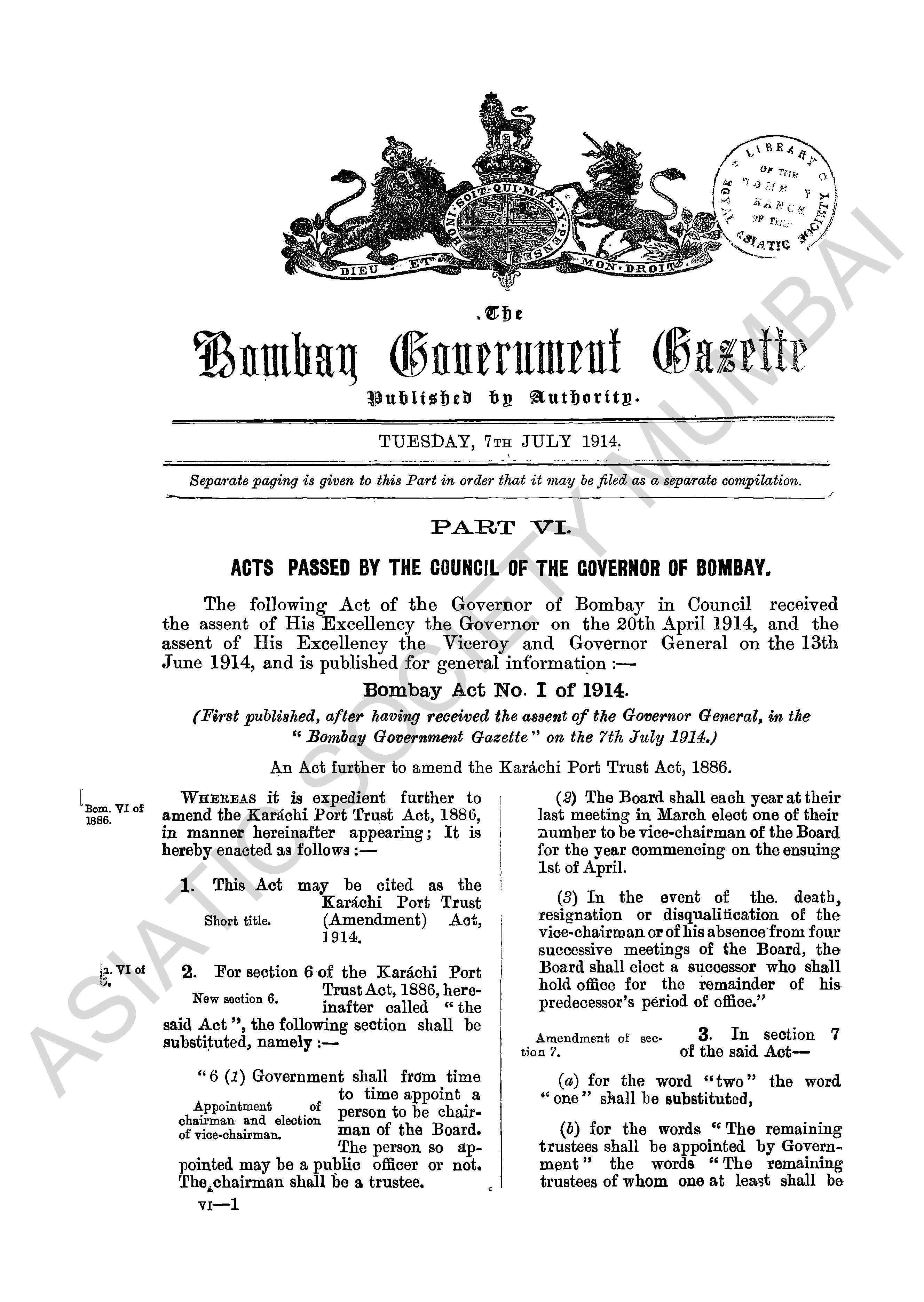Bombay Government Gazette..., July to December 1914, Pa ...