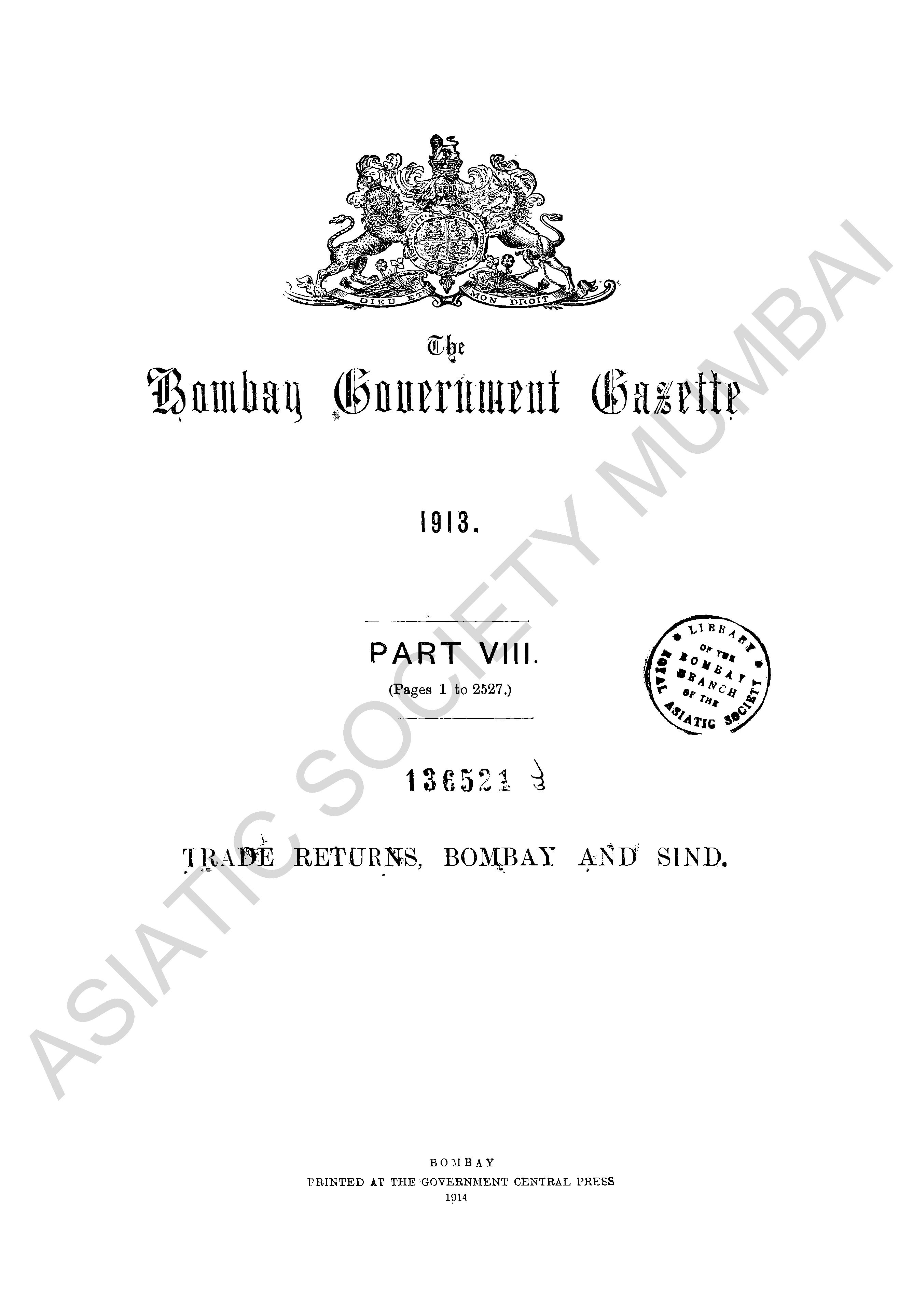 Bombay Government Gazette, Part - VIII, 1913.