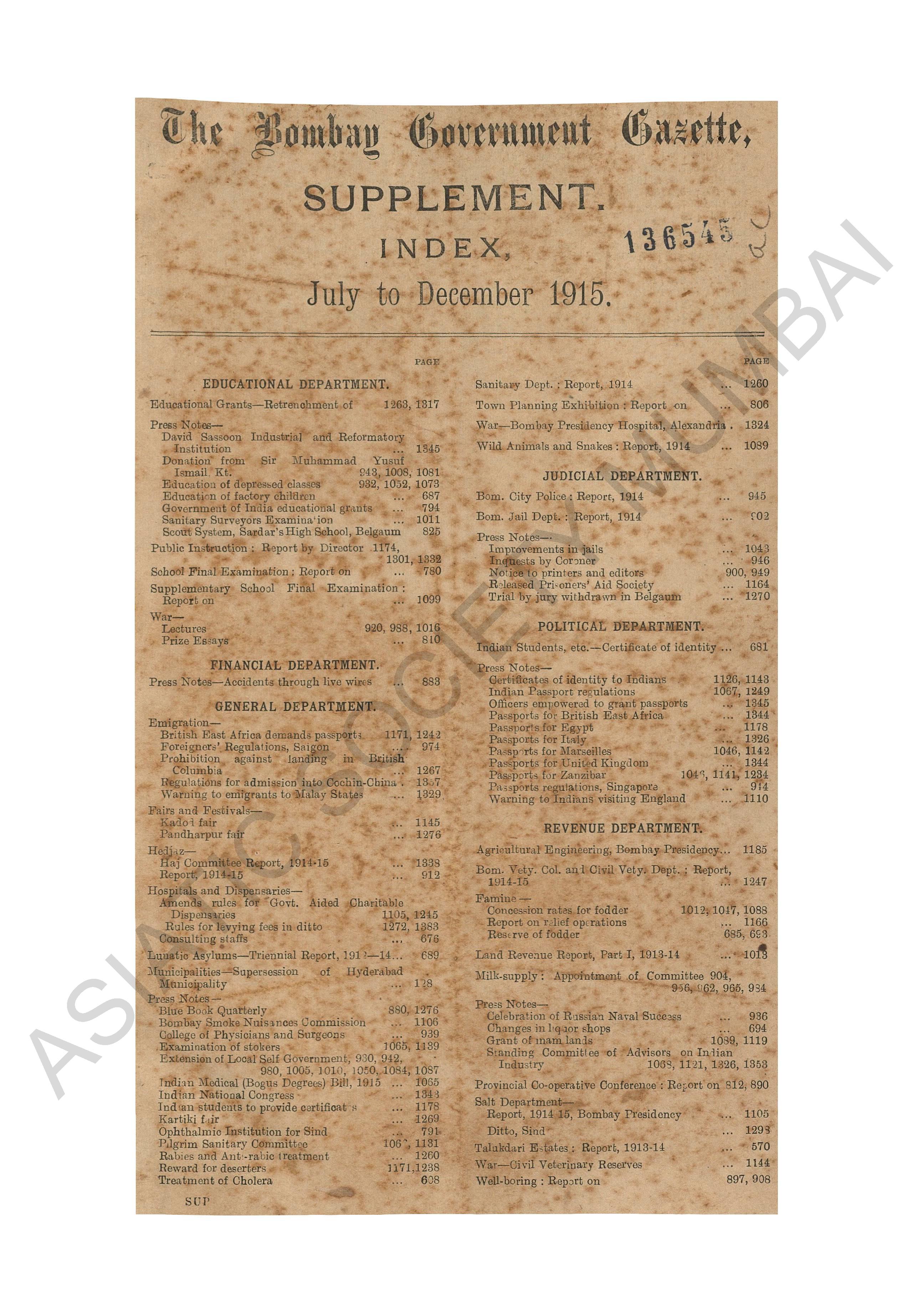 Bombay Government Gazette..., July to December 1915, Pa ...