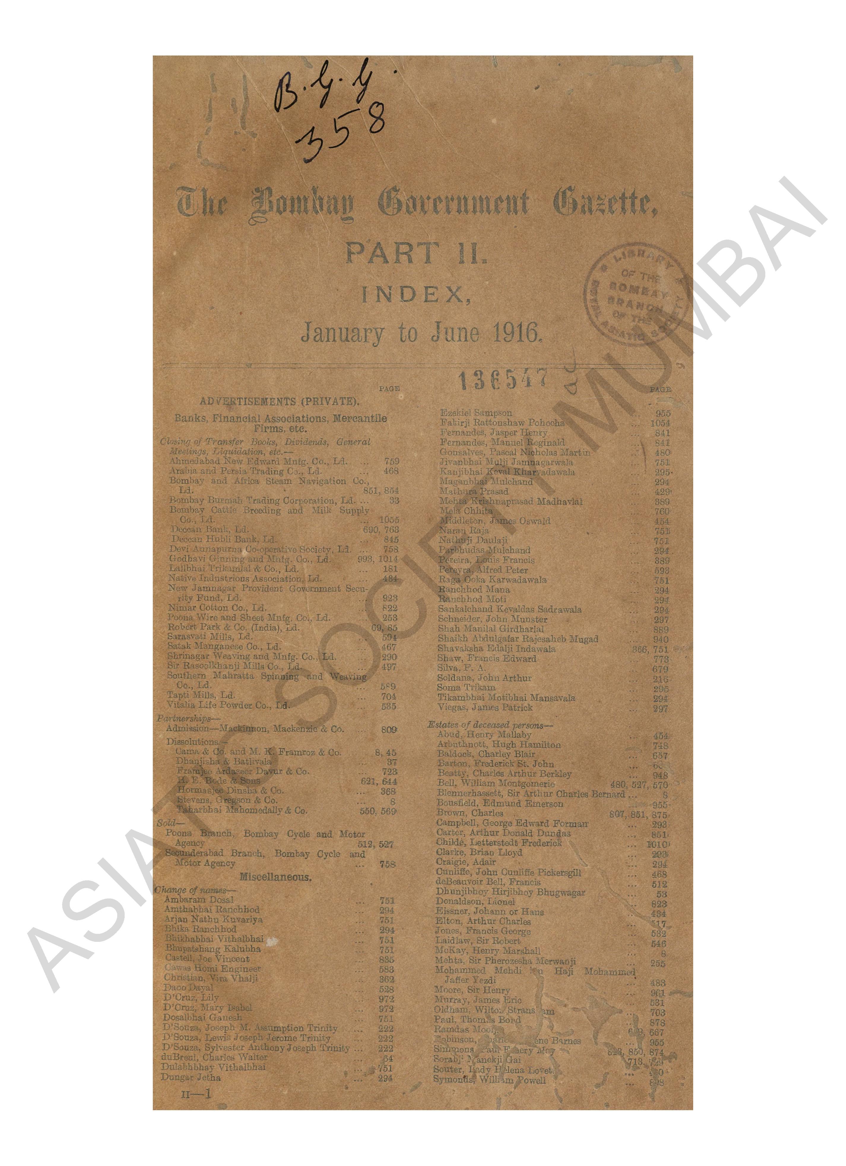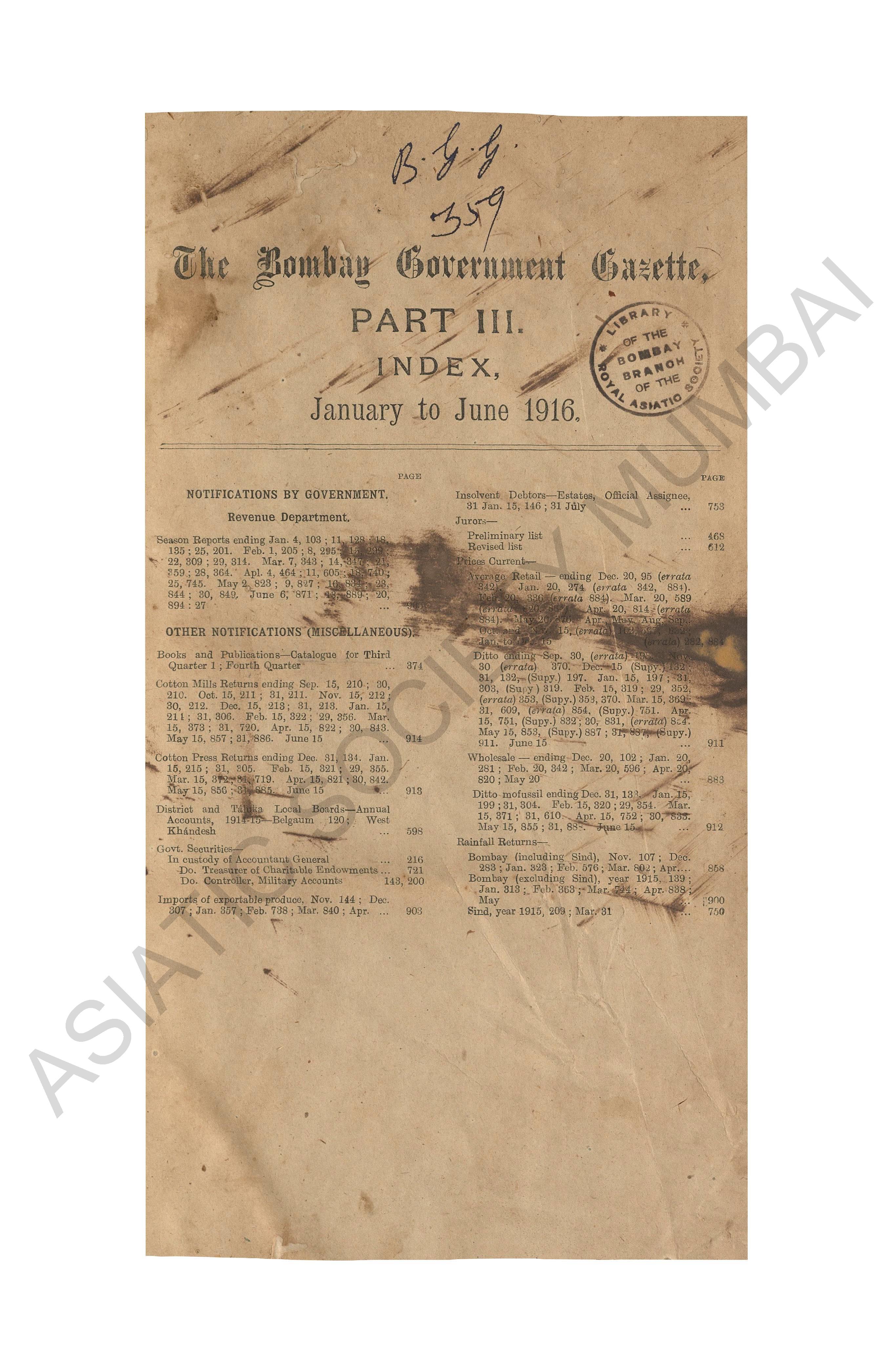 Bombay Government Gazette..., January to June 1916, Par ...