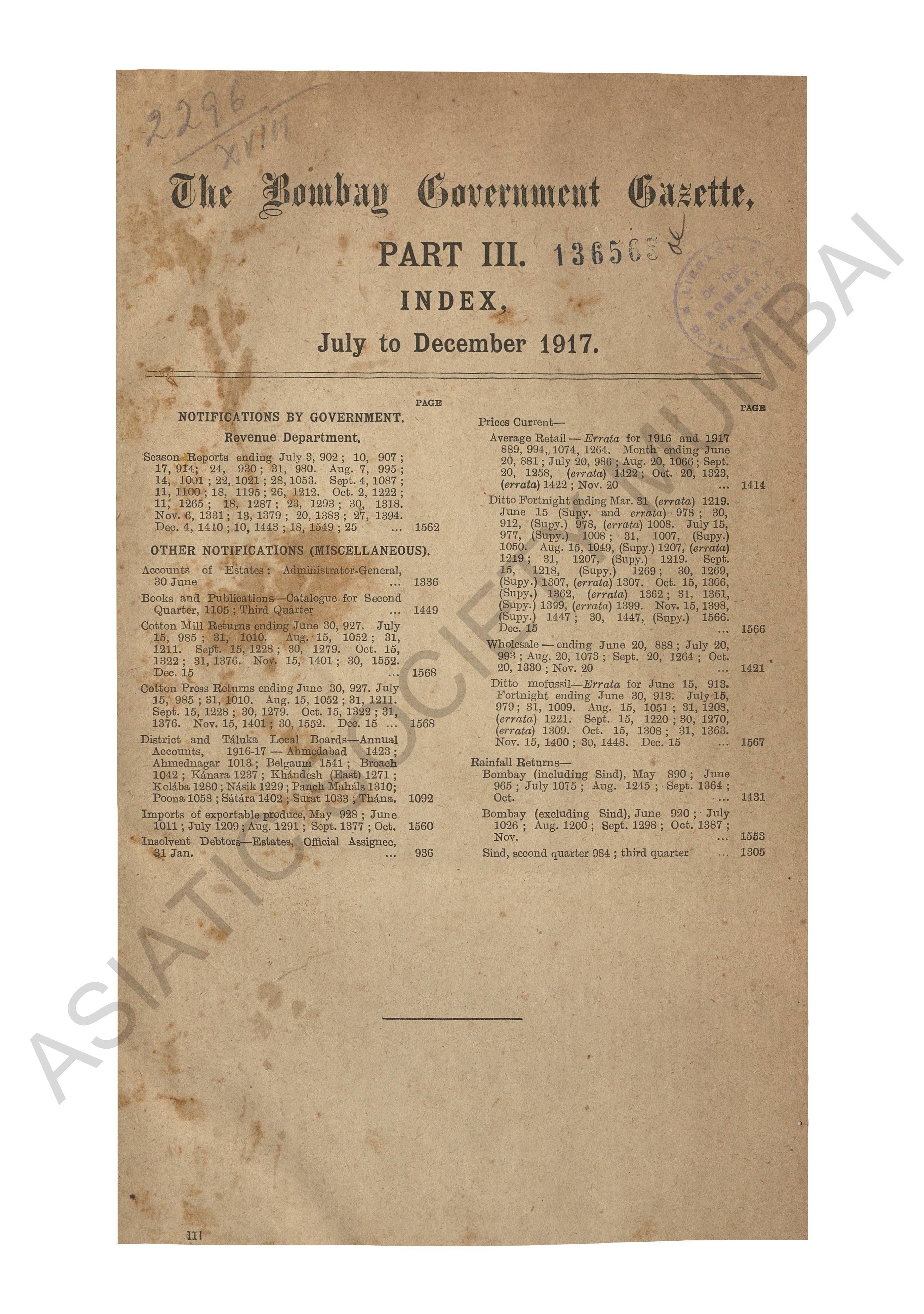 Bombay Government Gazette..., July to December 1917, Pa ...