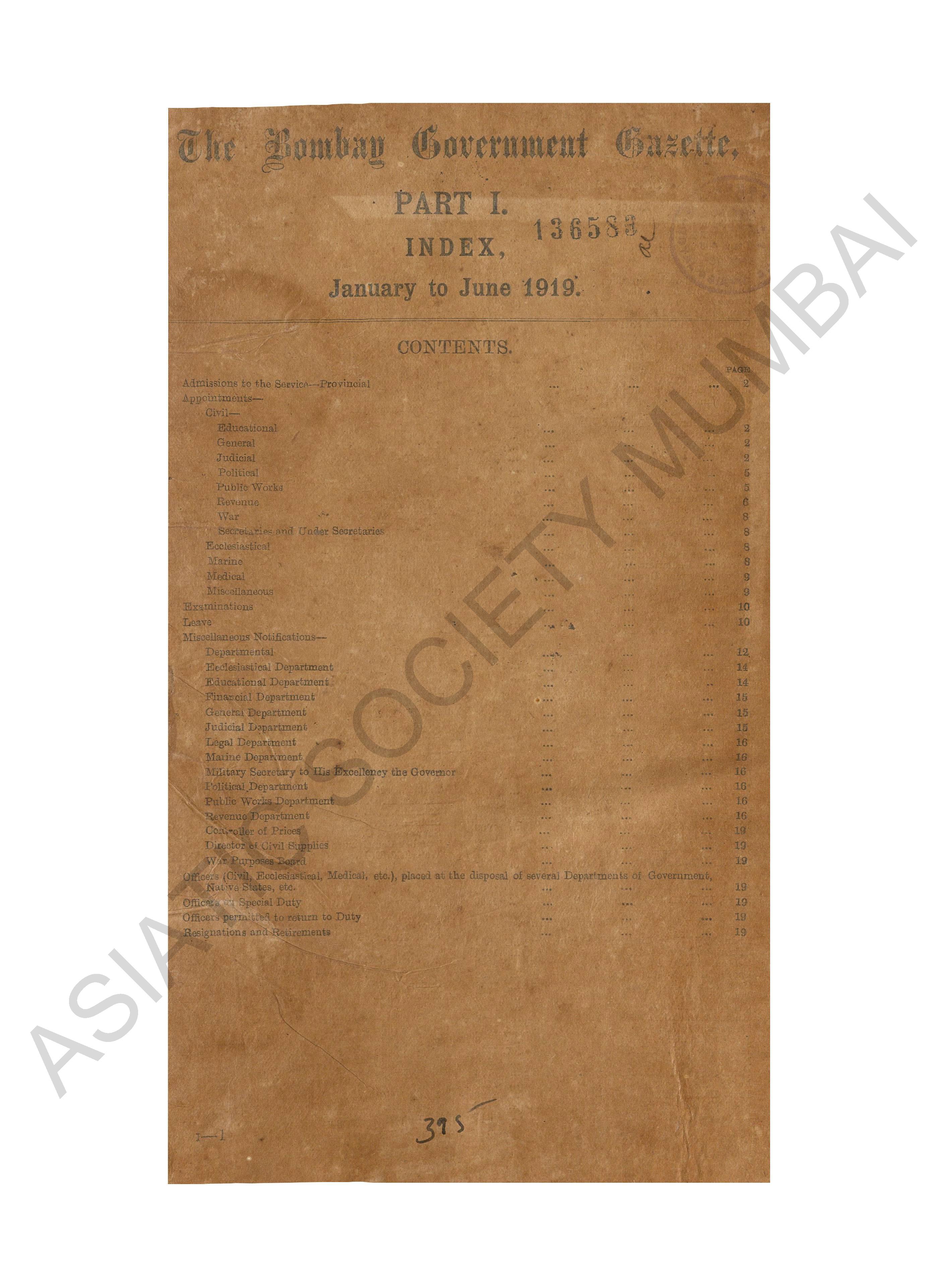 | Subject | : | Bombay (India : State) - periodicals, India - Bombay (state) |