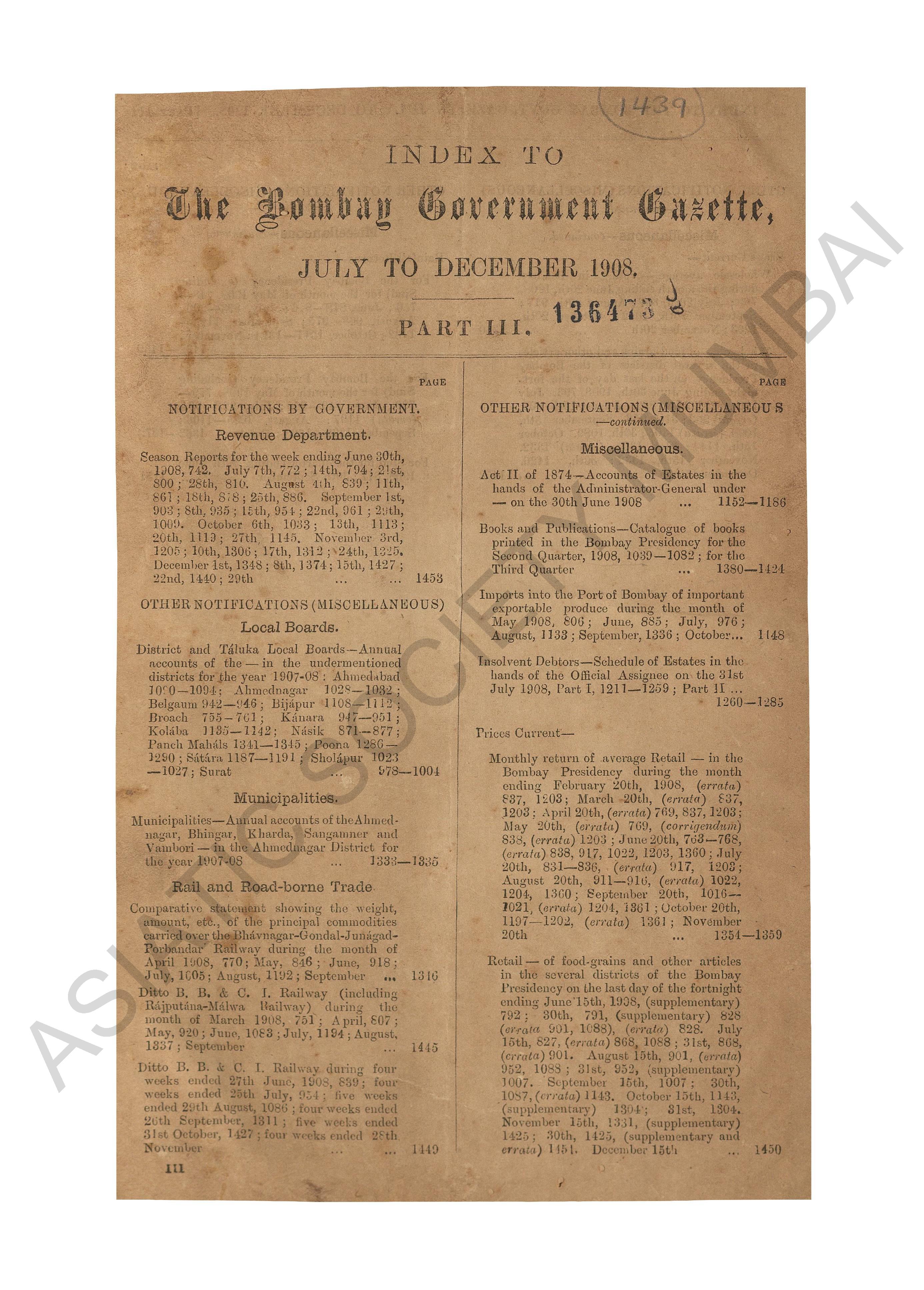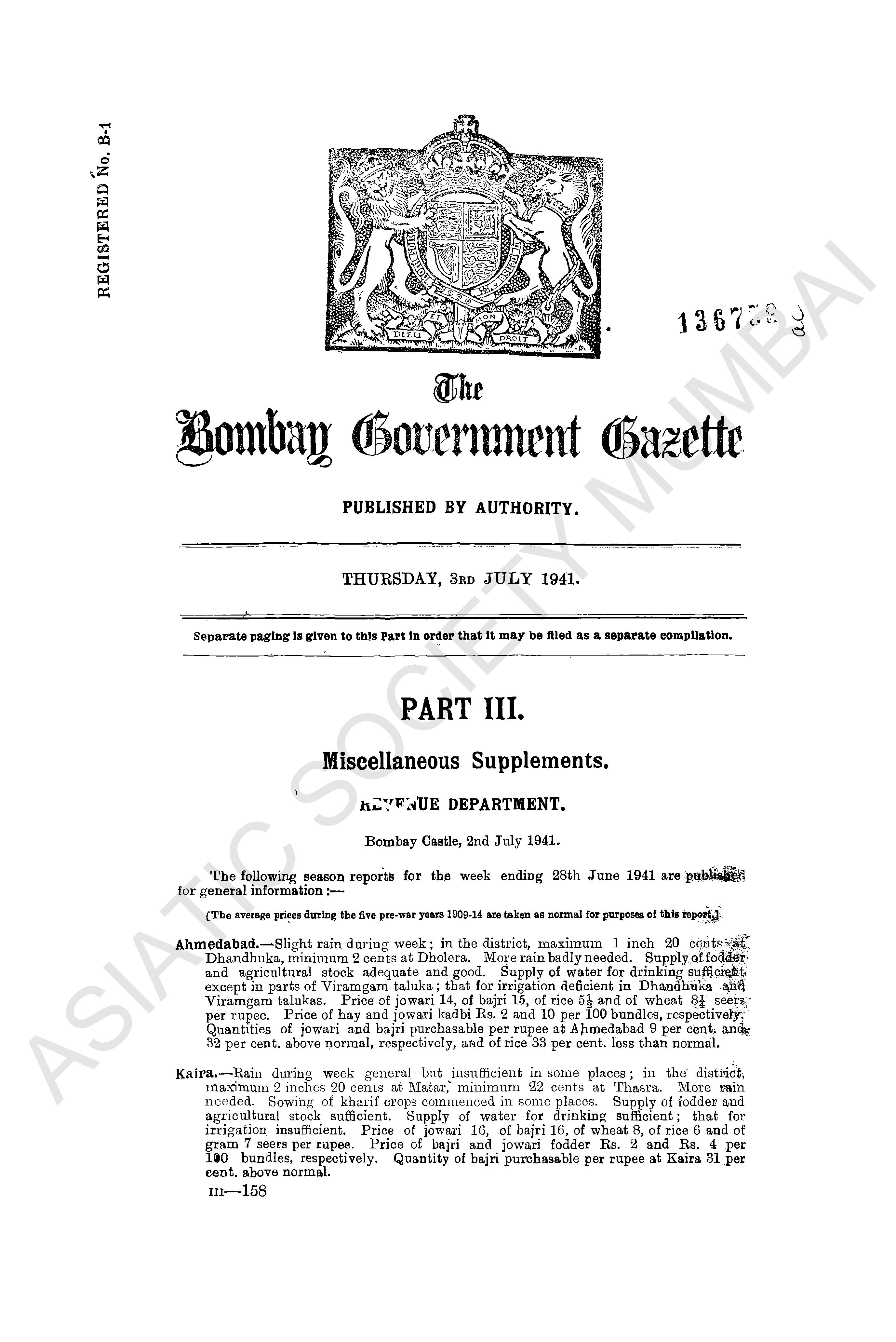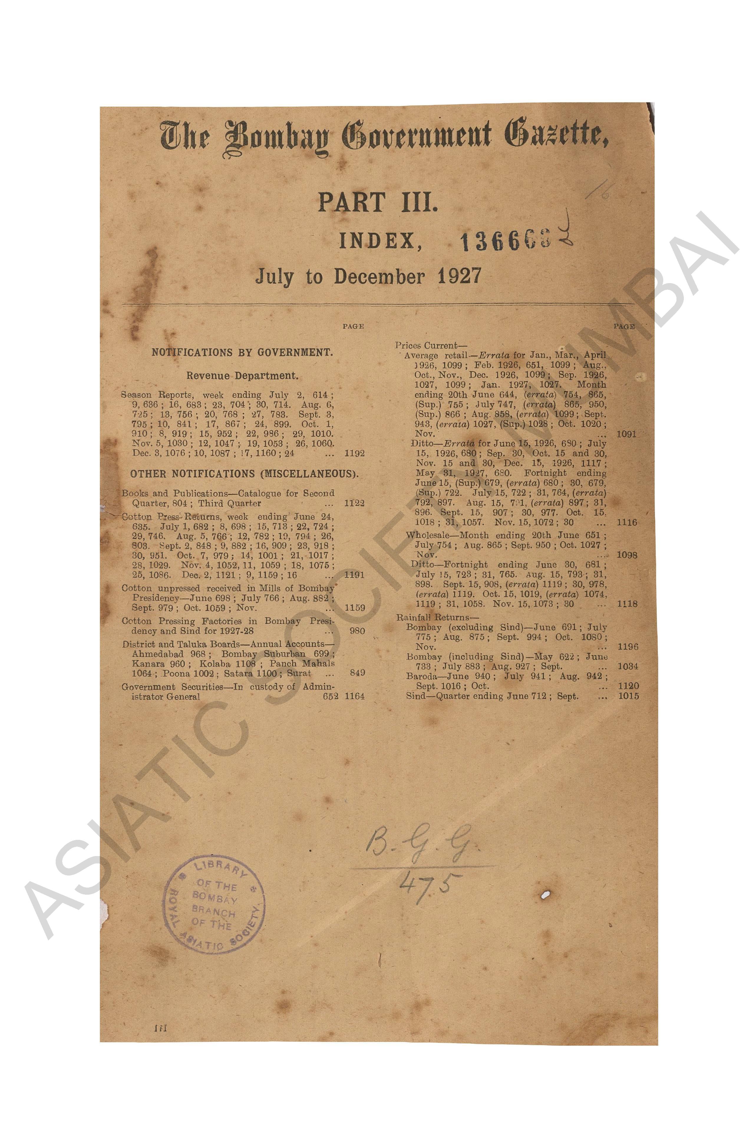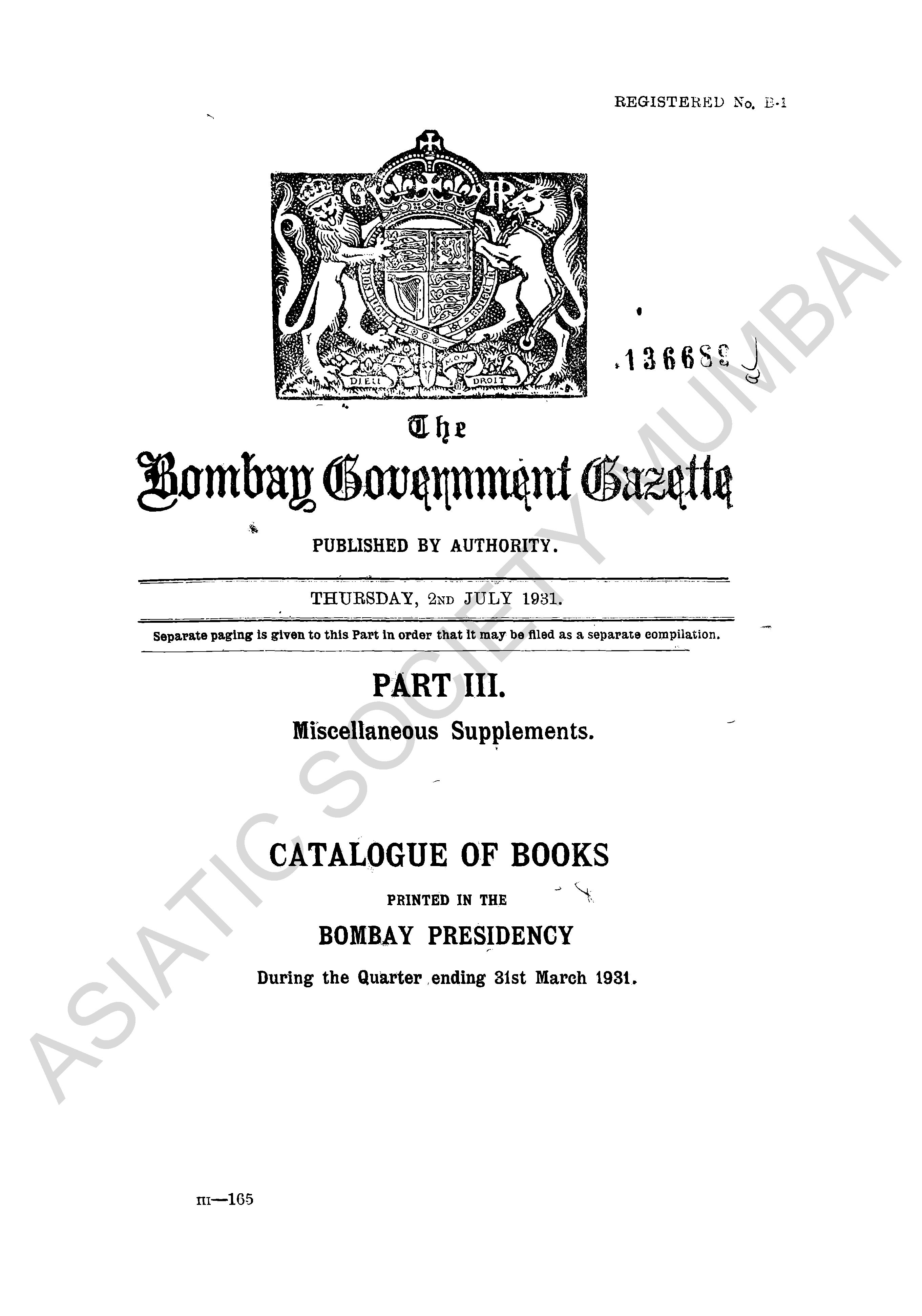 | Subject | : | Bombay (India : State) - periodicals, India - Bombay (state) |