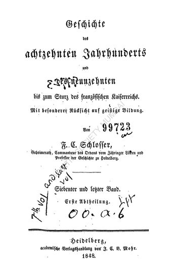 Geschichte des Achtzehnten Jahrhunderts und des Neunzeh ...