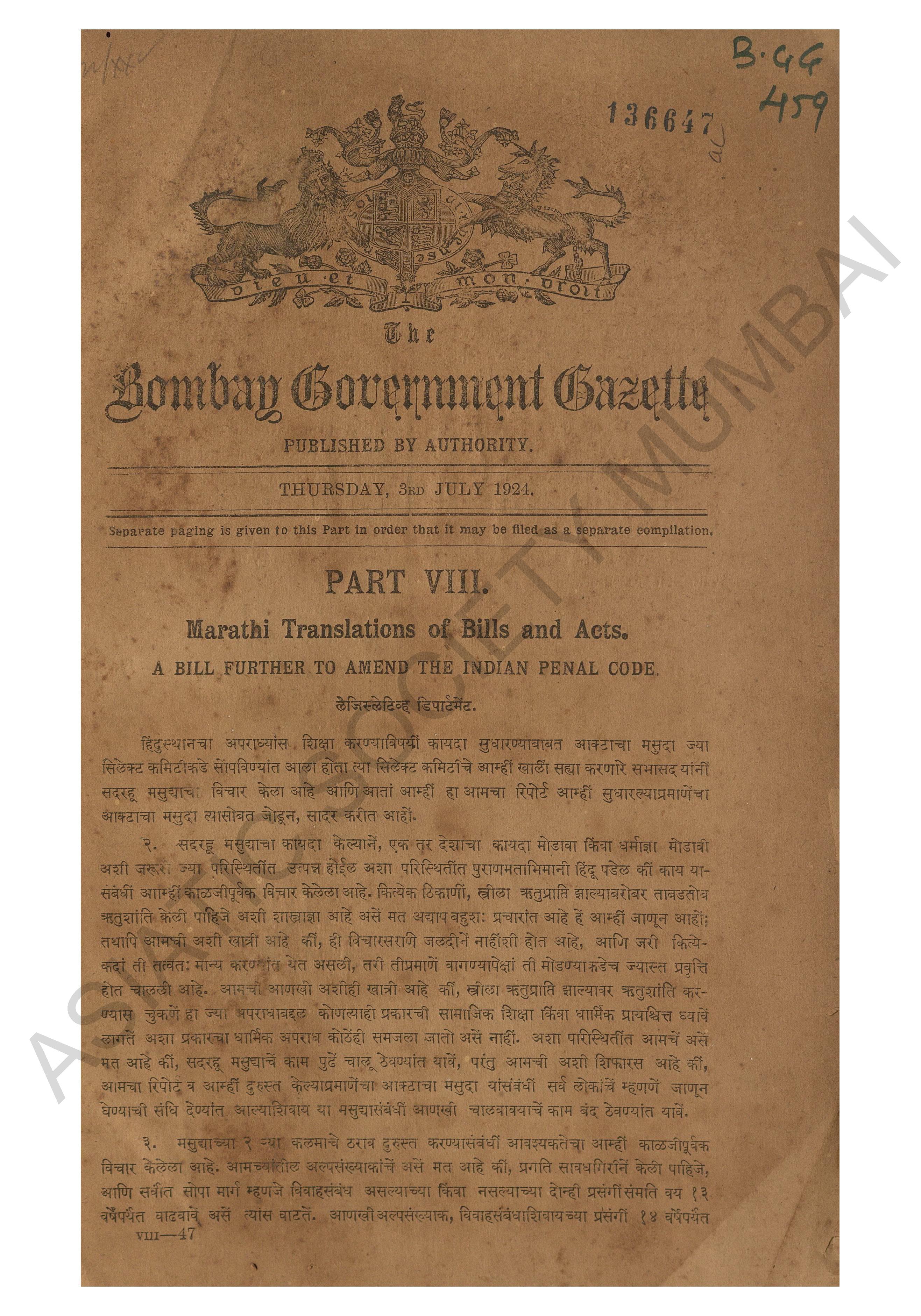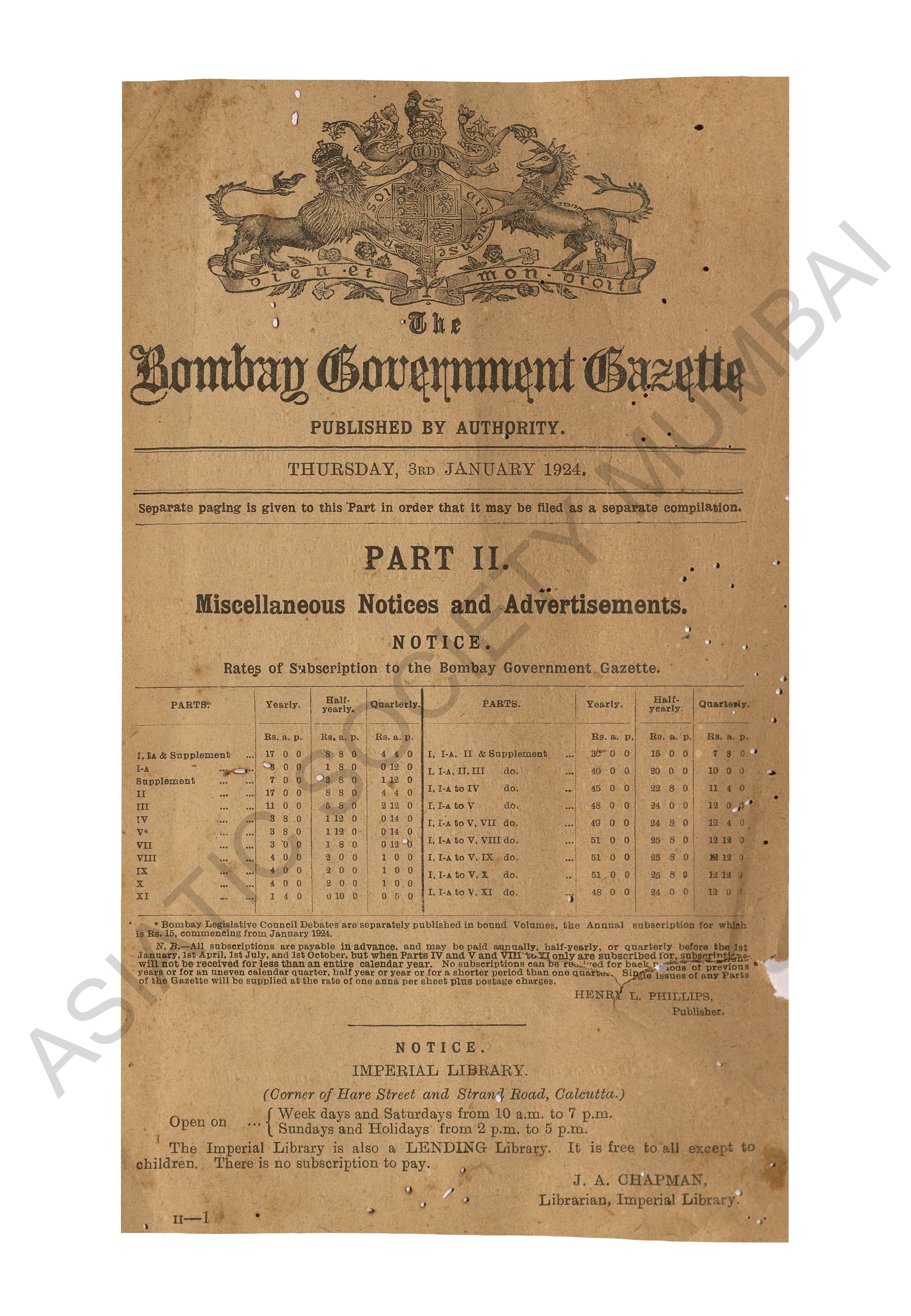 | Subject | : | Bombay (India : State) - periodicals, India - Bombay (state) |