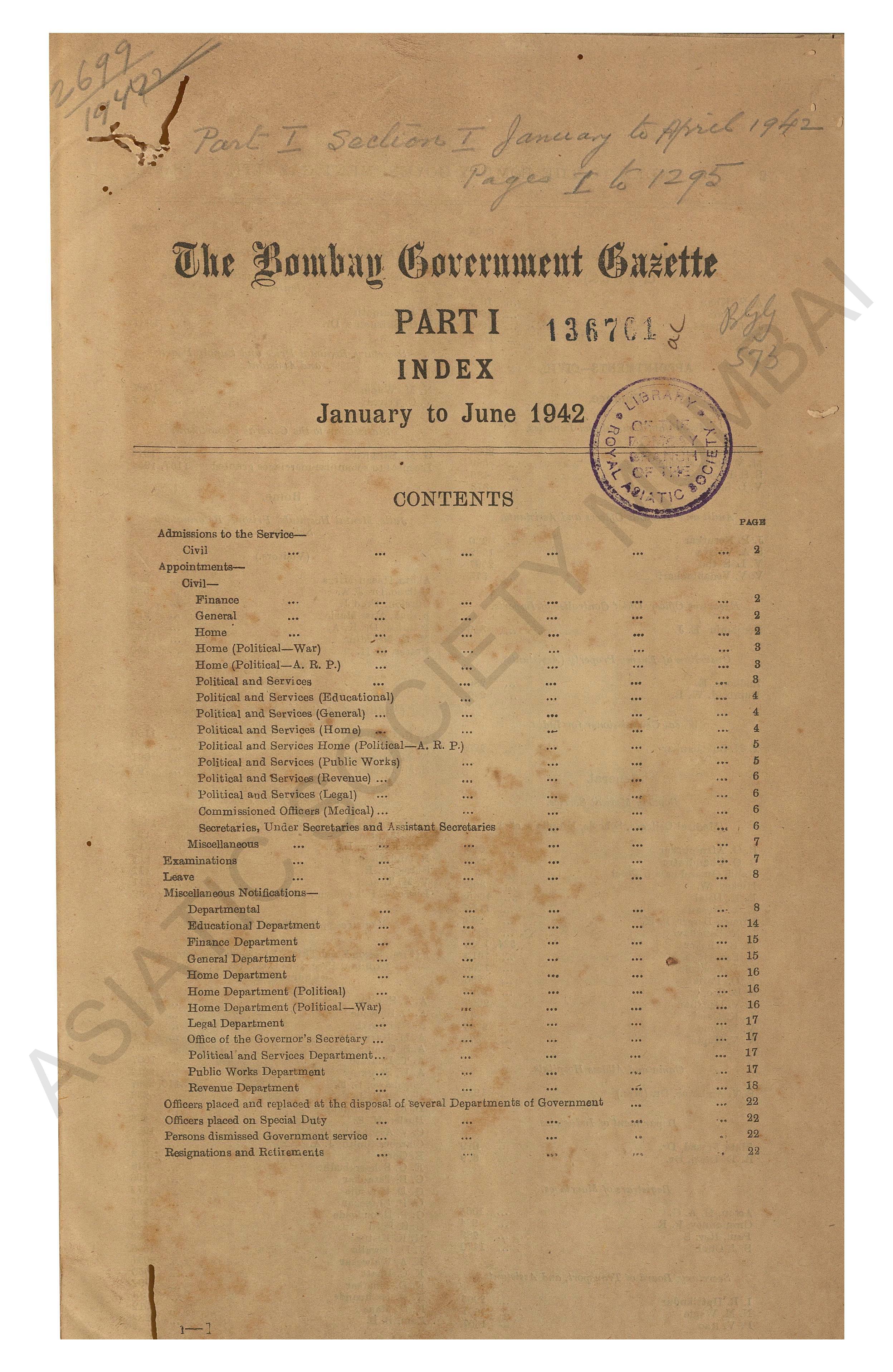| Subject | : | Bombay (India : State) - periodicals, India - Bombay (state) |