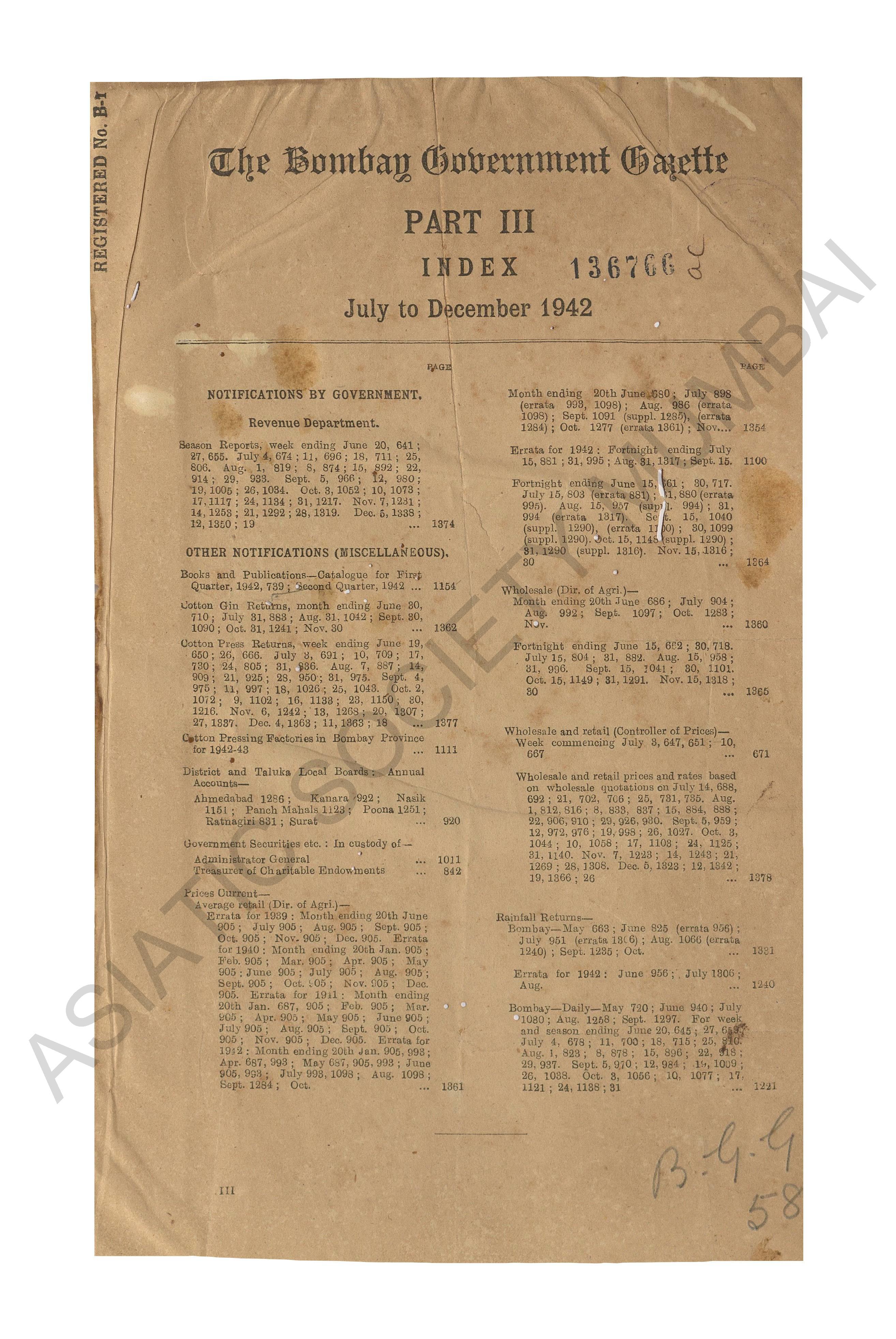 Bombay Government Gazette..., July to December 1942, Pa ...