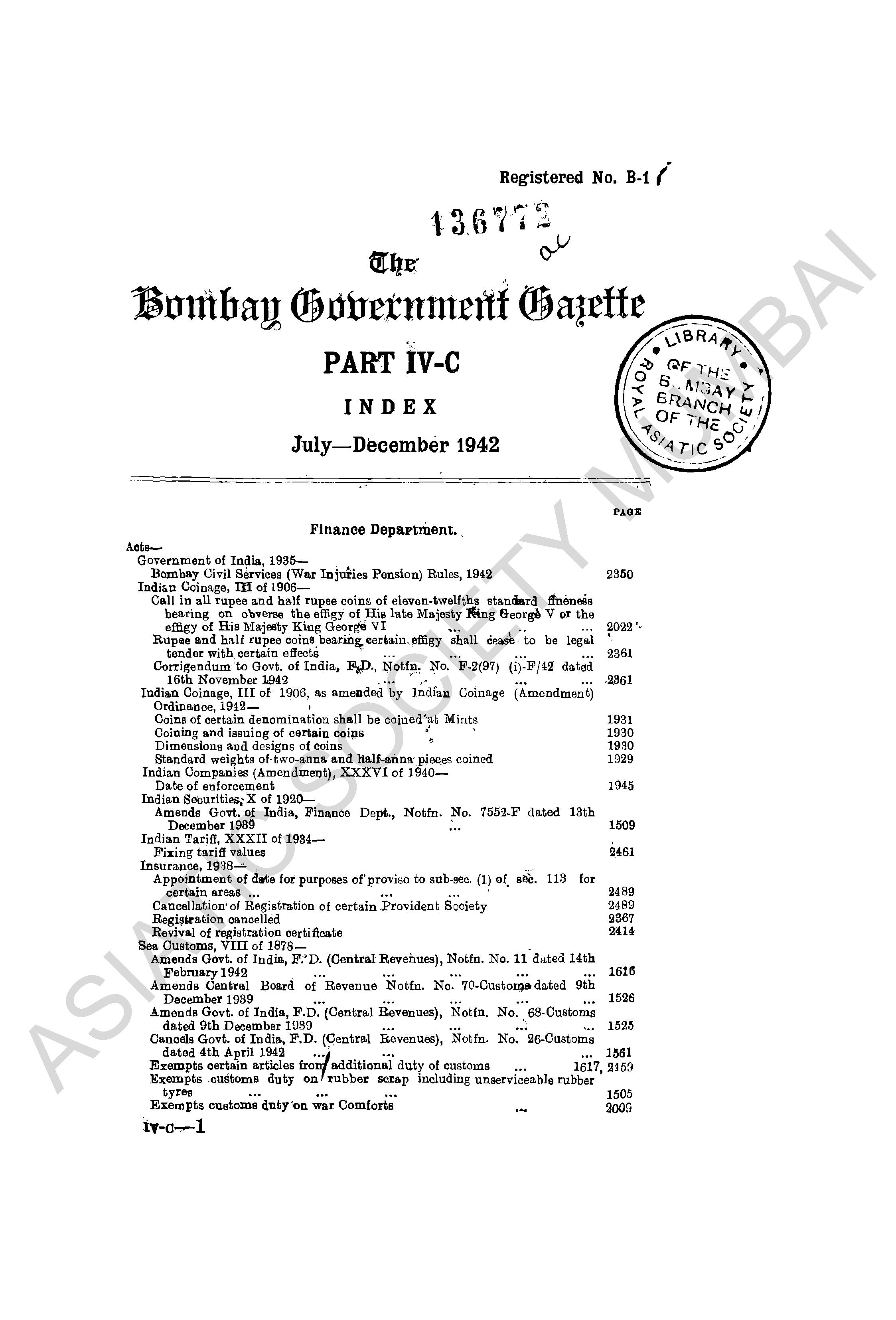 Bombay Government Gazette..., July to December 1942, Part - IV.