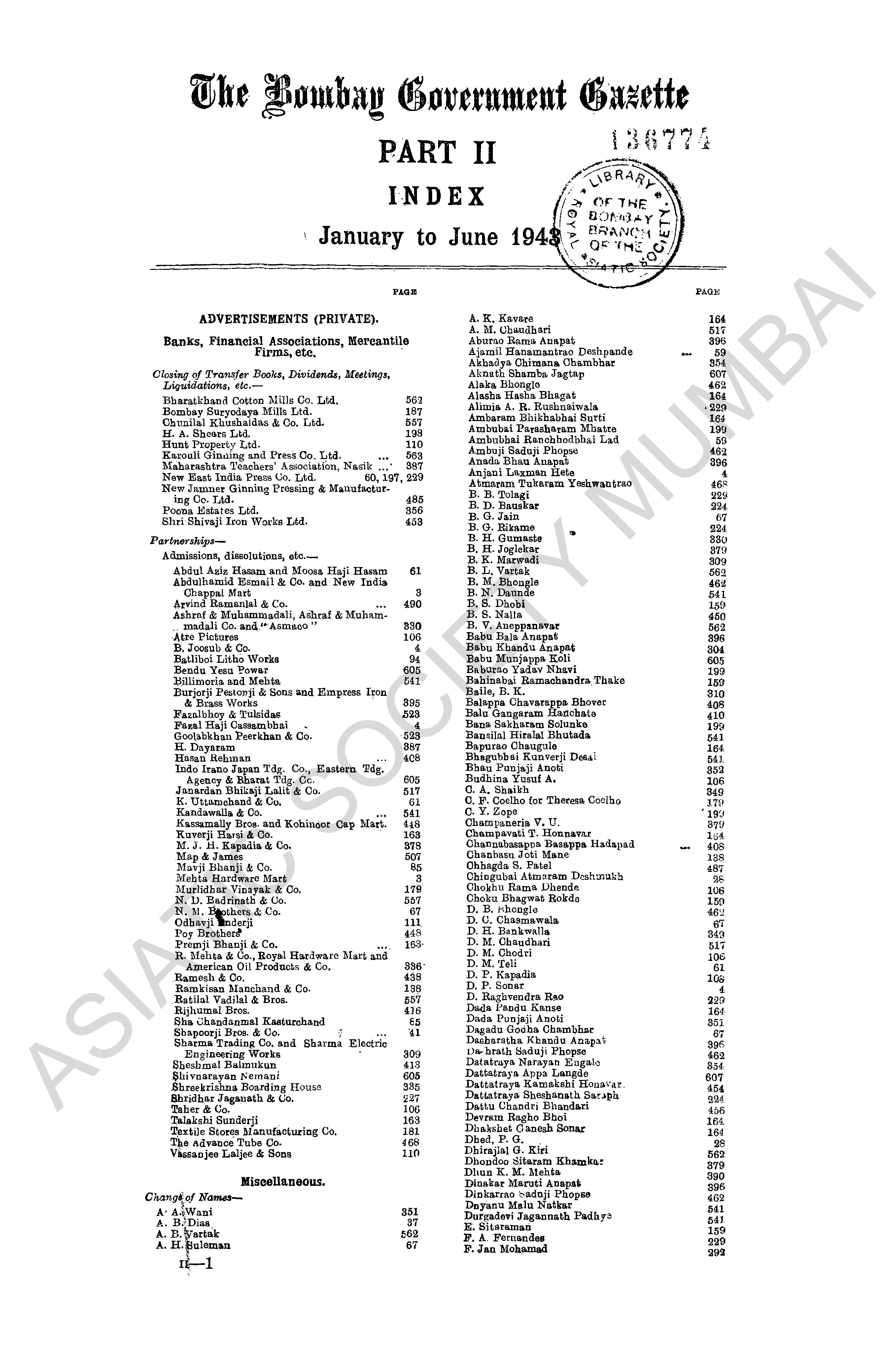 | Subject | : | Bombay (India : State) - periodicals, India - Bombay (state) |