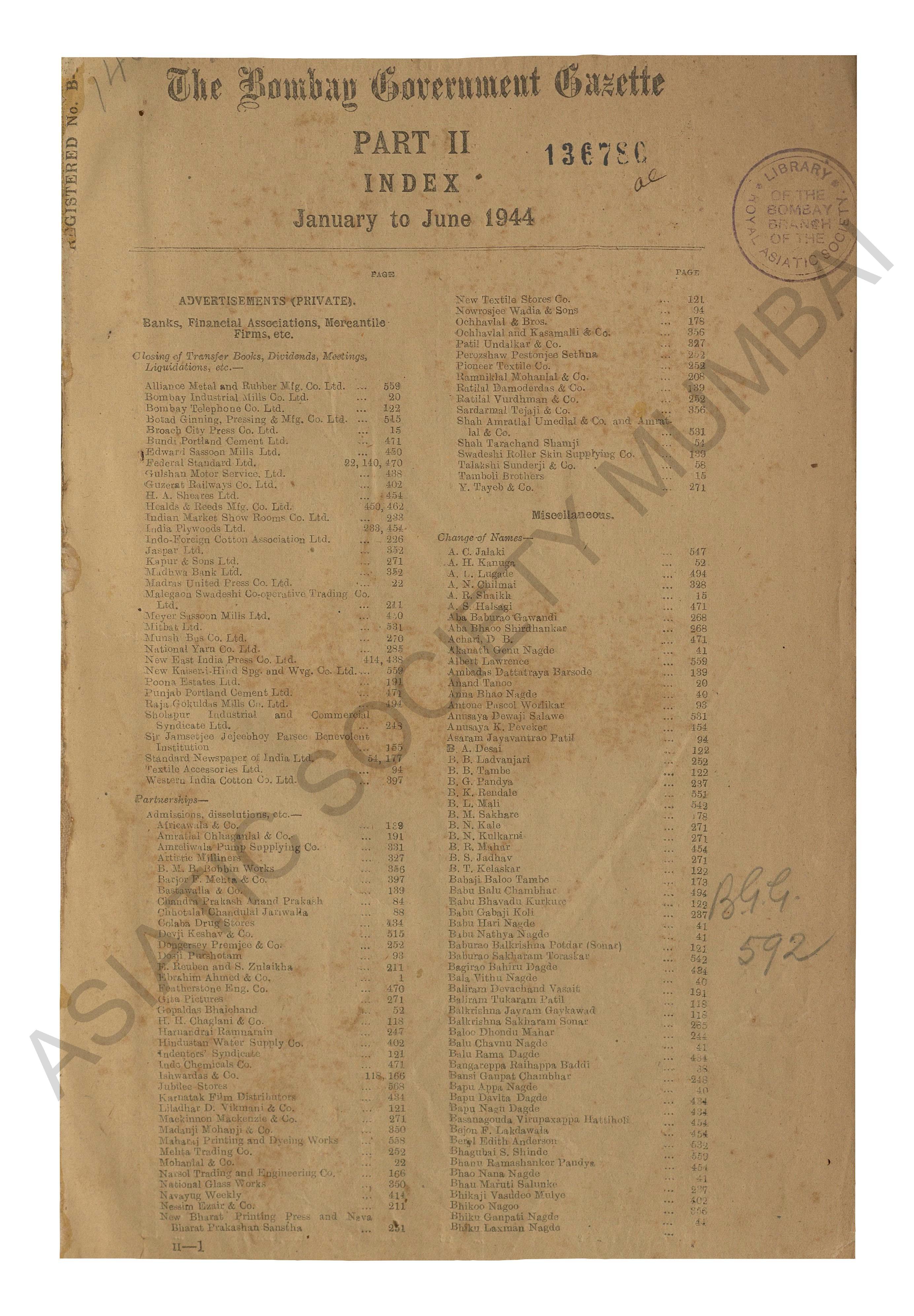 Bombay Government Gazette..., January to June 1944, Part - IV.
