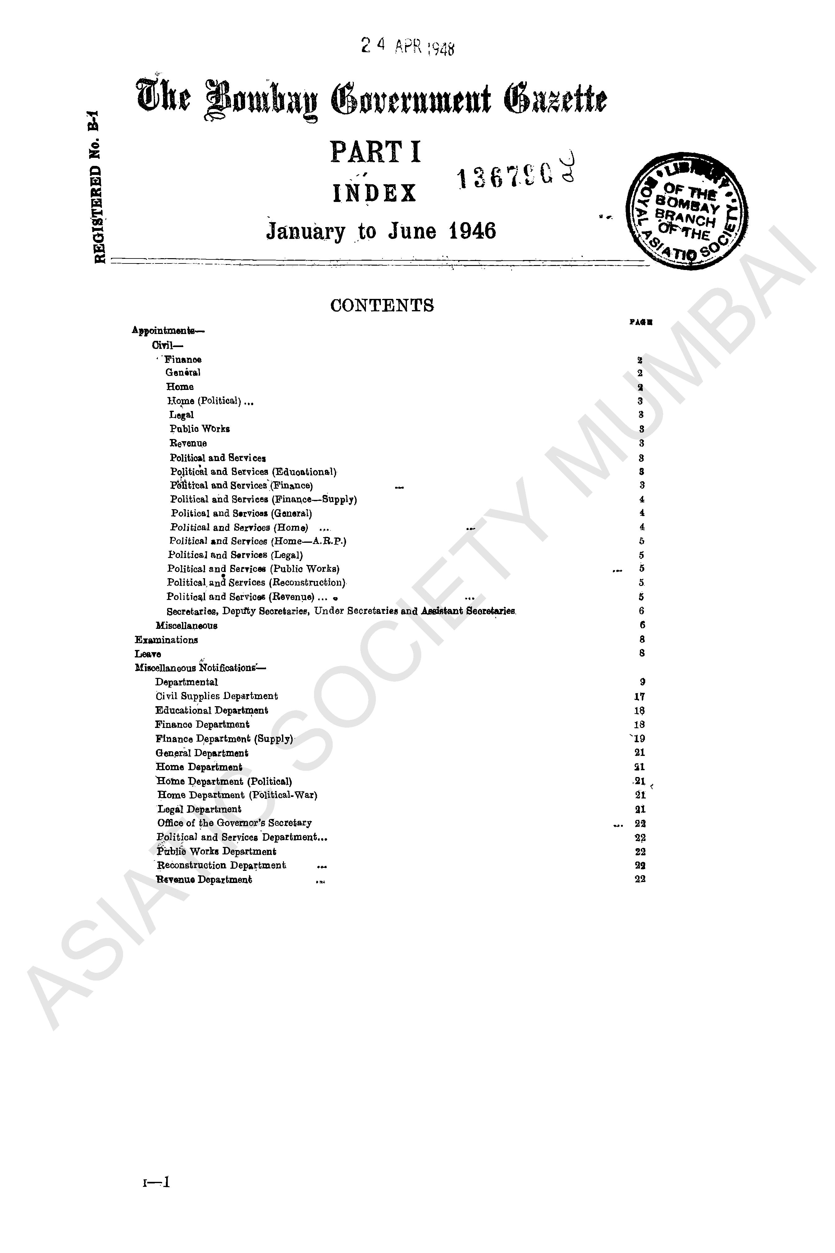| Subject | : | Bombay (India : State) - periodicals, India - Bombay (state) |
