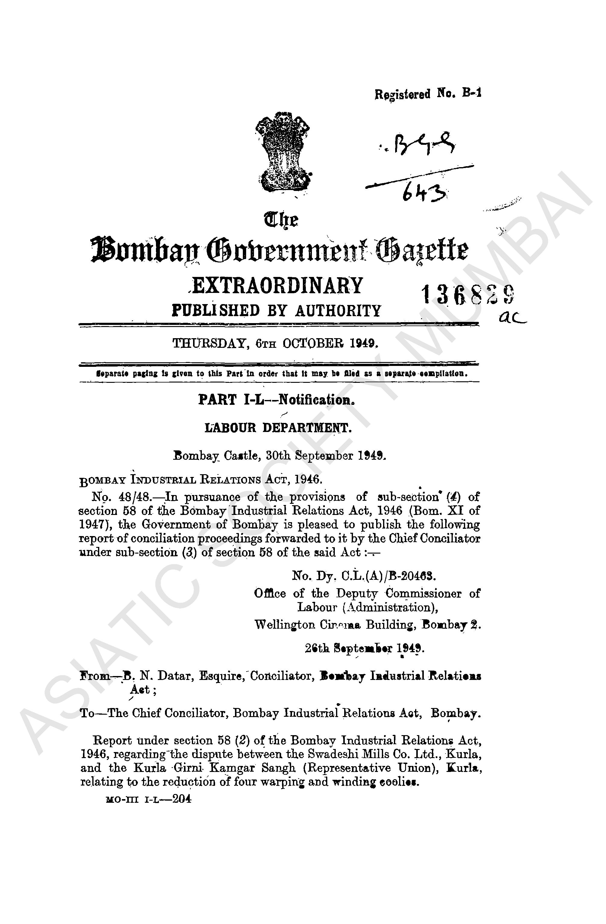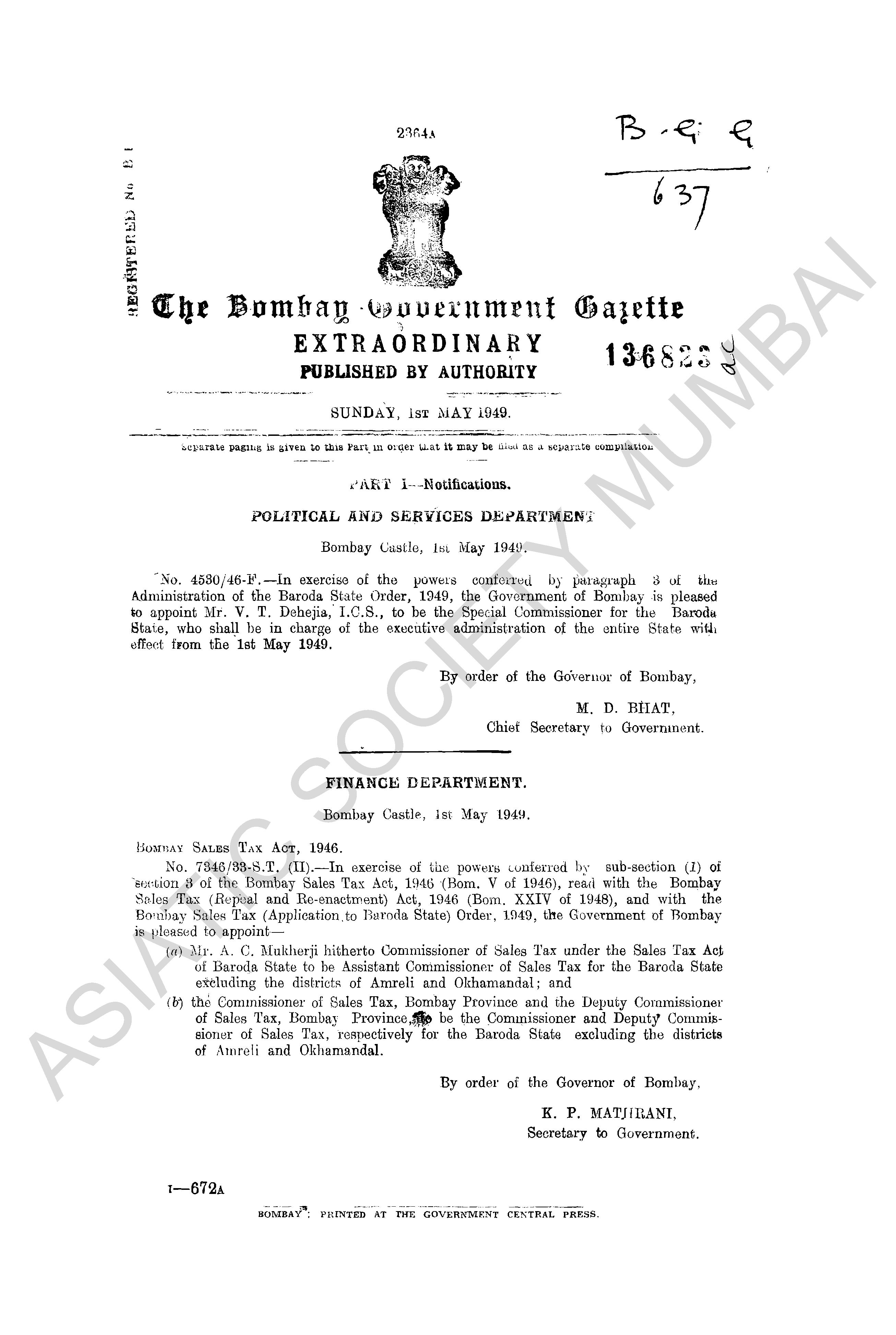 Bombay Government Gazette..., July to December 1949, Pa ...