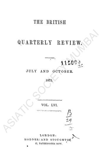 British Quarterly Review July to October 1872 Vol LVI.