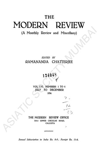 Modern Review a Monthly Review and Miscellany Vol LVI. ...