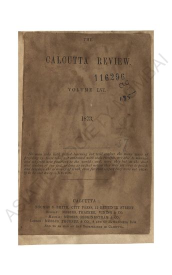Calcutta Review., Vol. LVI, 1873.