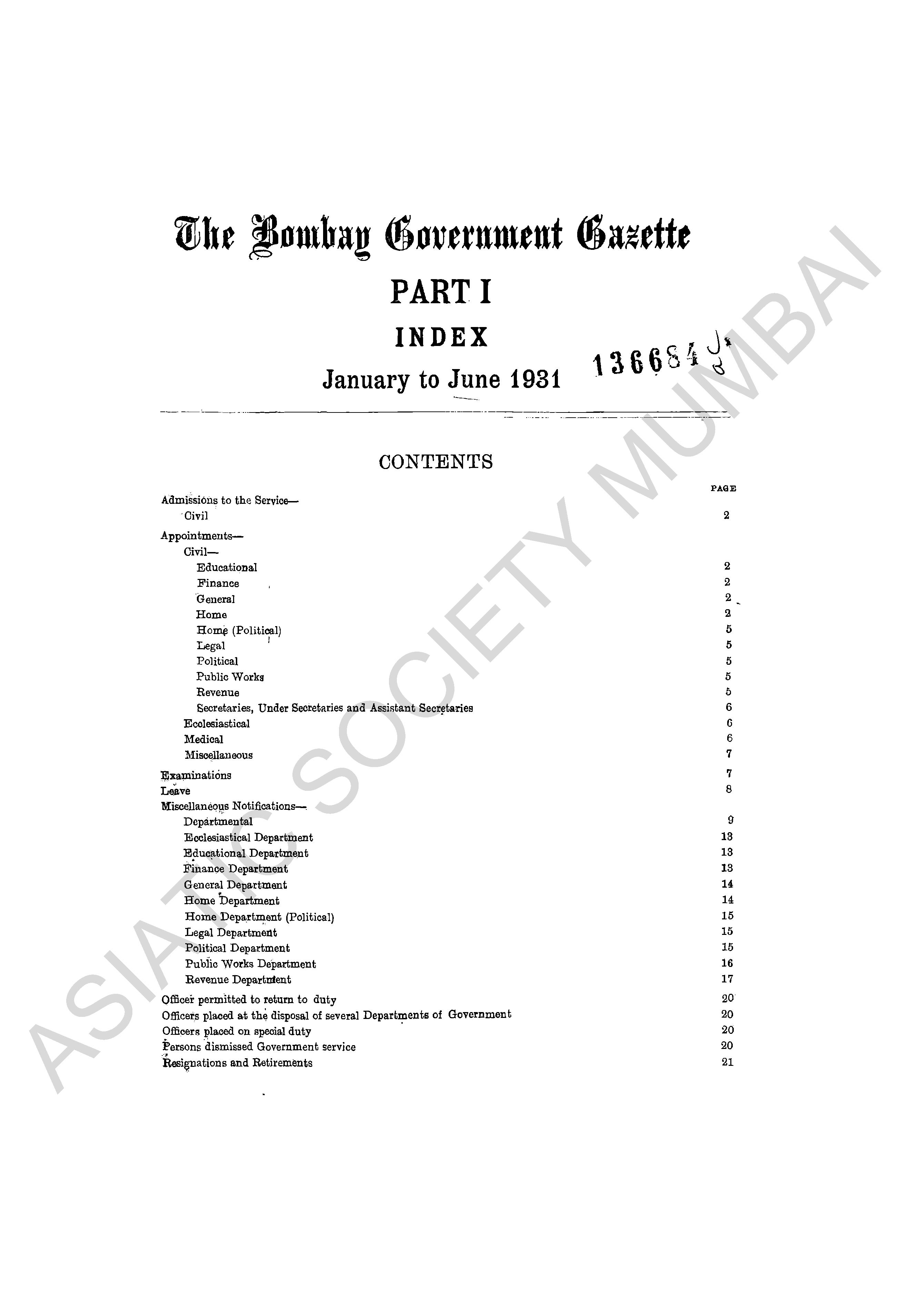 | Subject | : | Bombay (India : State) - periodicals, India - Bombay (state) |