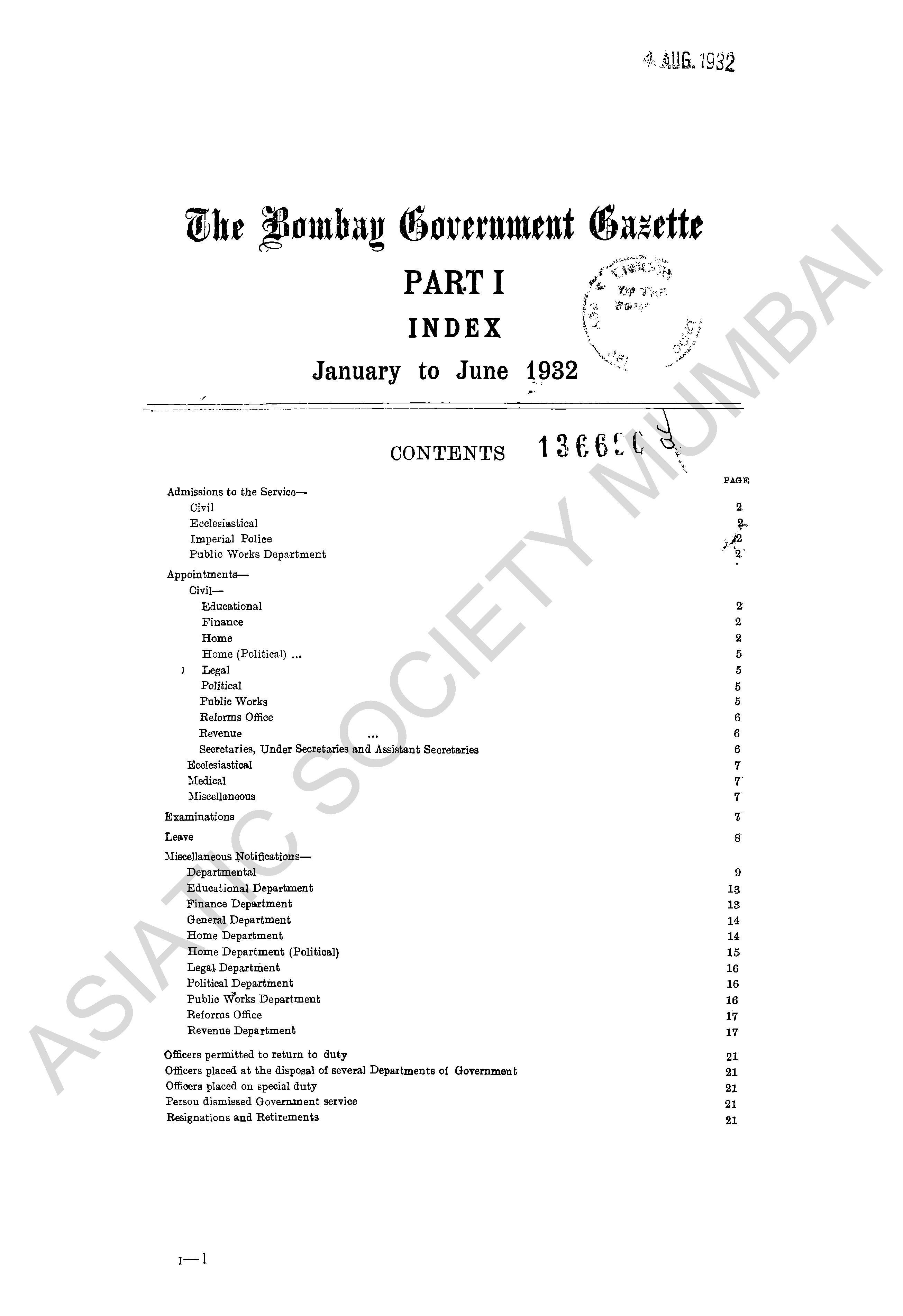 | Subject | : | Bombay (India : State) - periodicals, India - Bombay (state) |