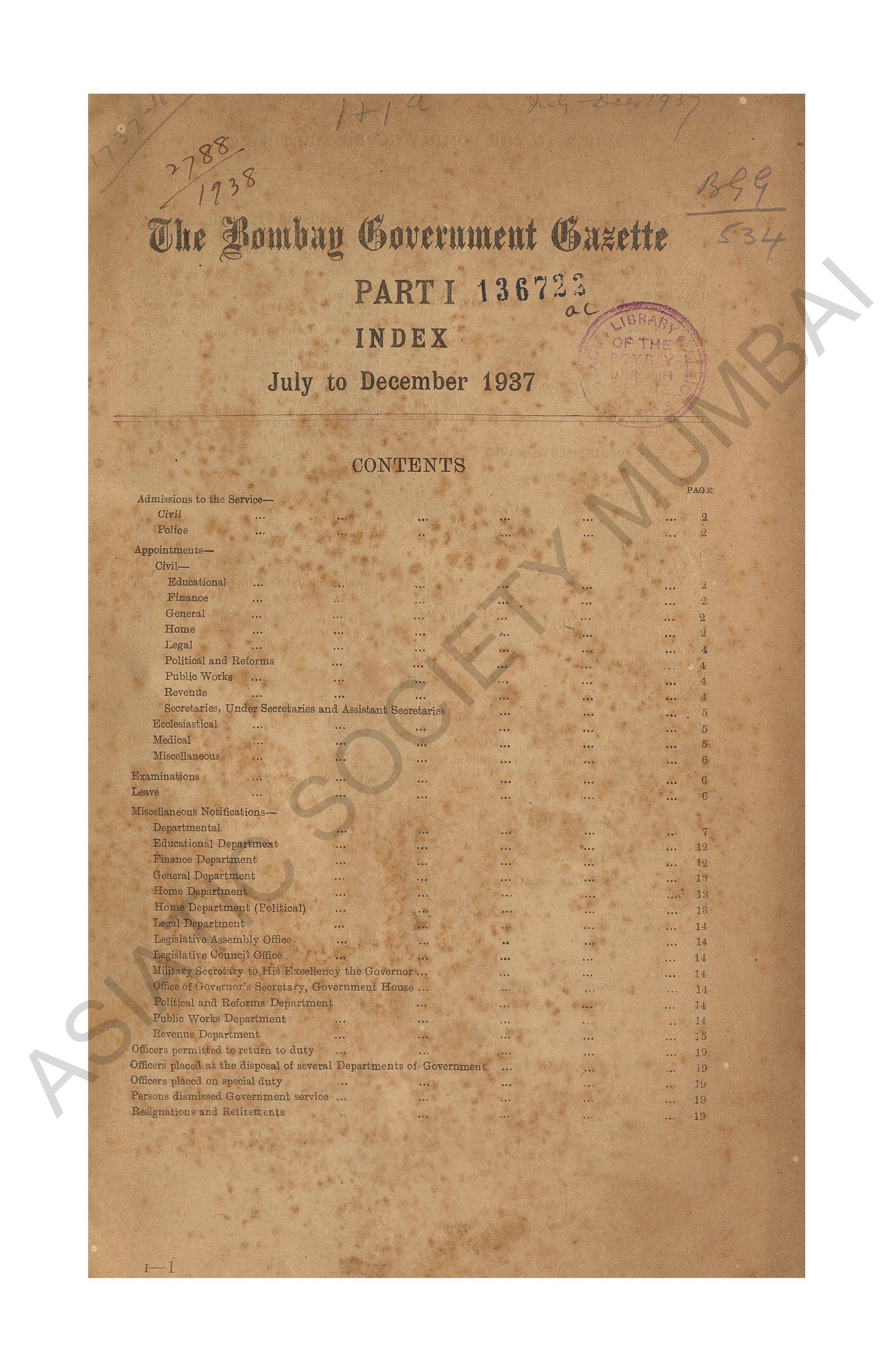 | Subject | : | Bombay (India : State) - periodicals, India - Bombay (state) |