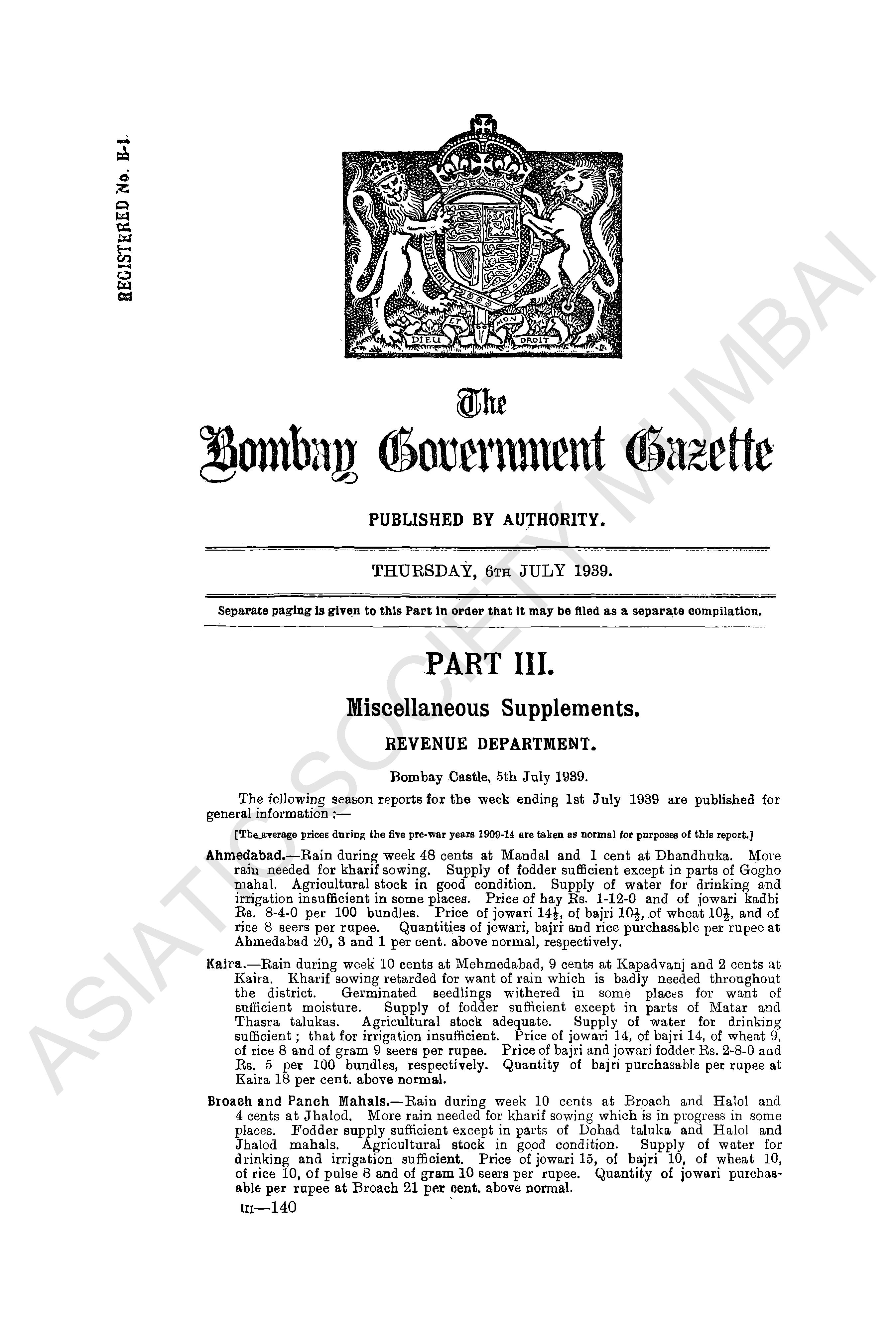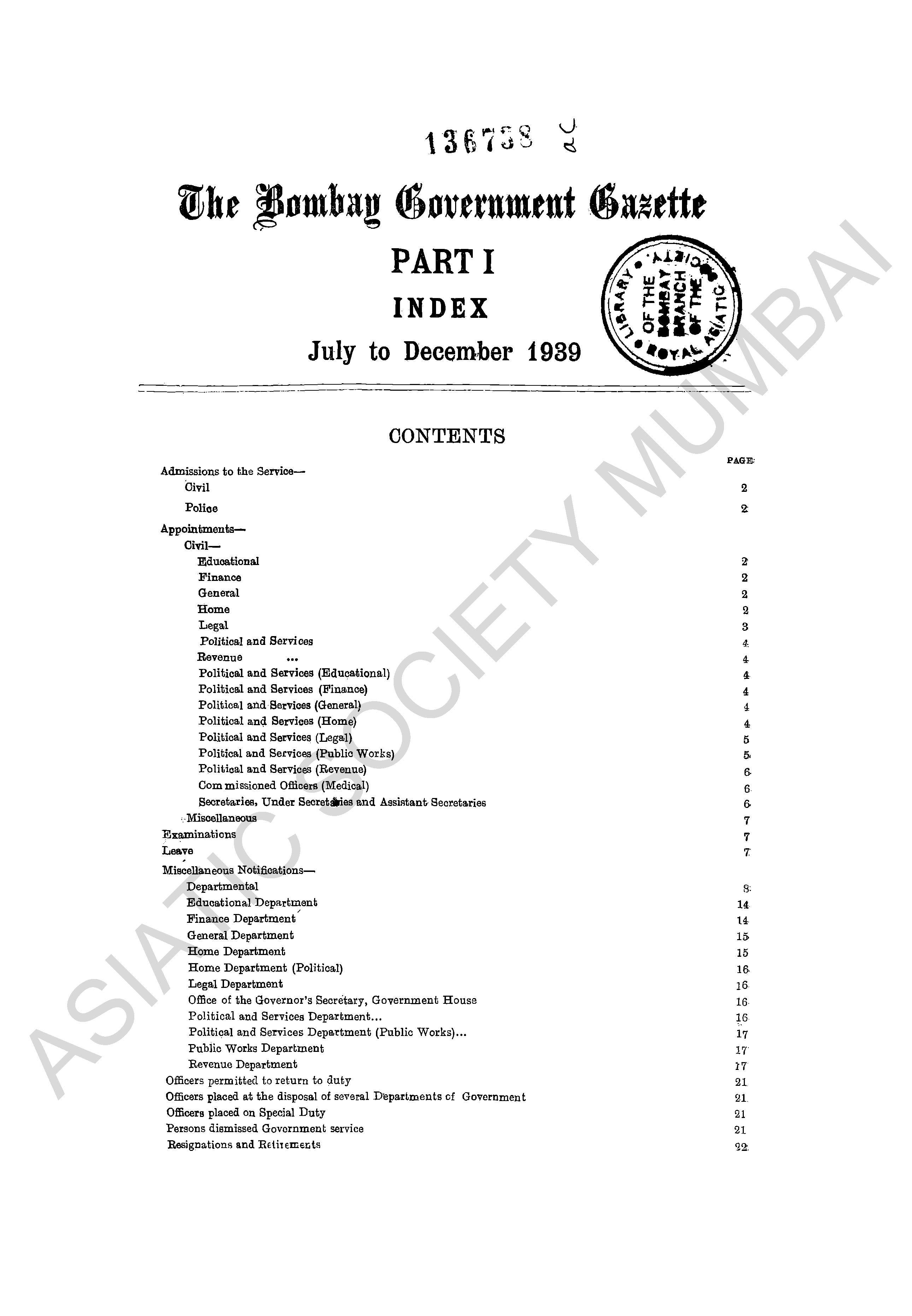 | Subject | : | Bombay (India : State) - periodicals, India - Bombay (state) |