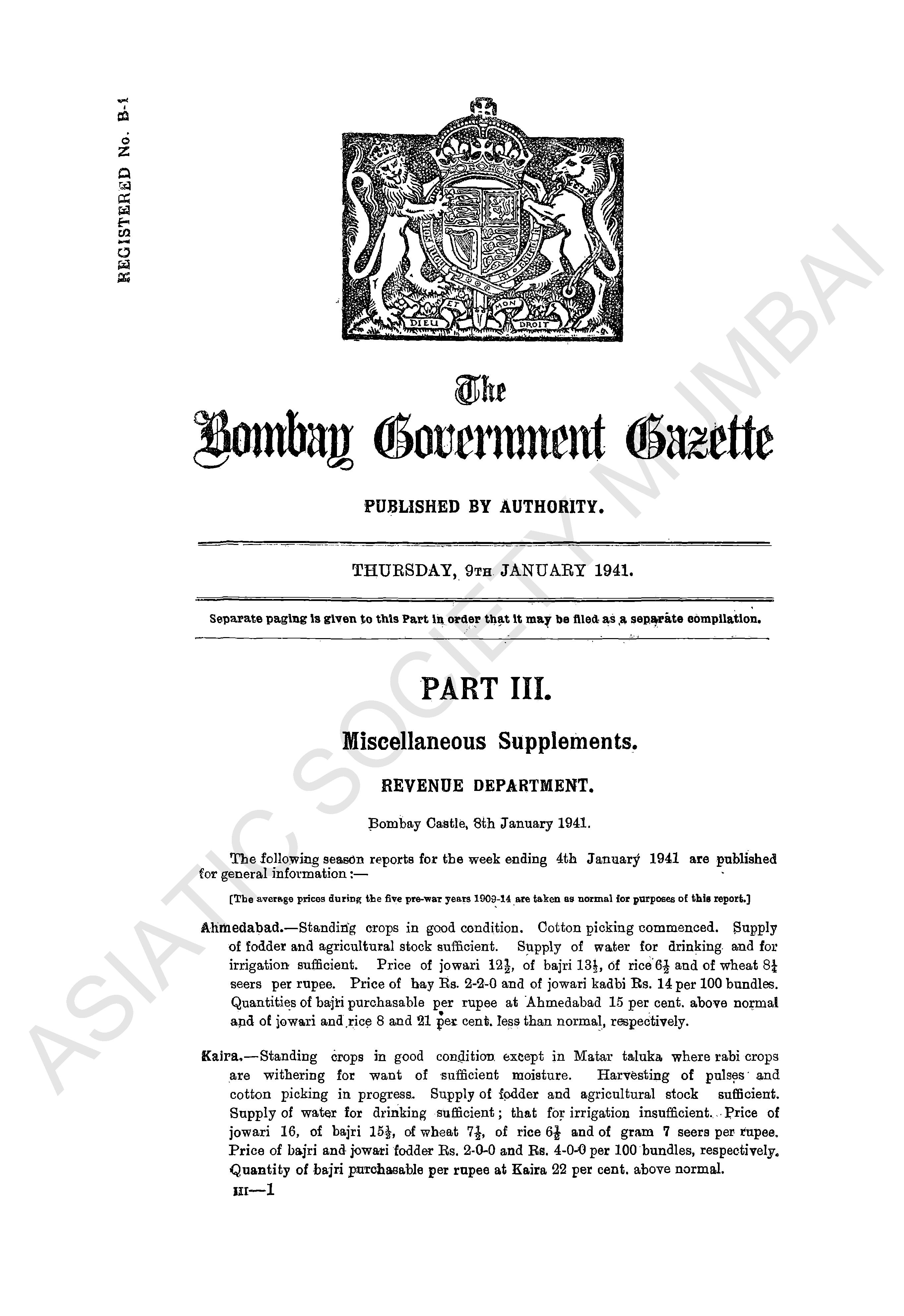 | Subject | : | Bombay (India : State) - periodicals, India - Bombay (state) |