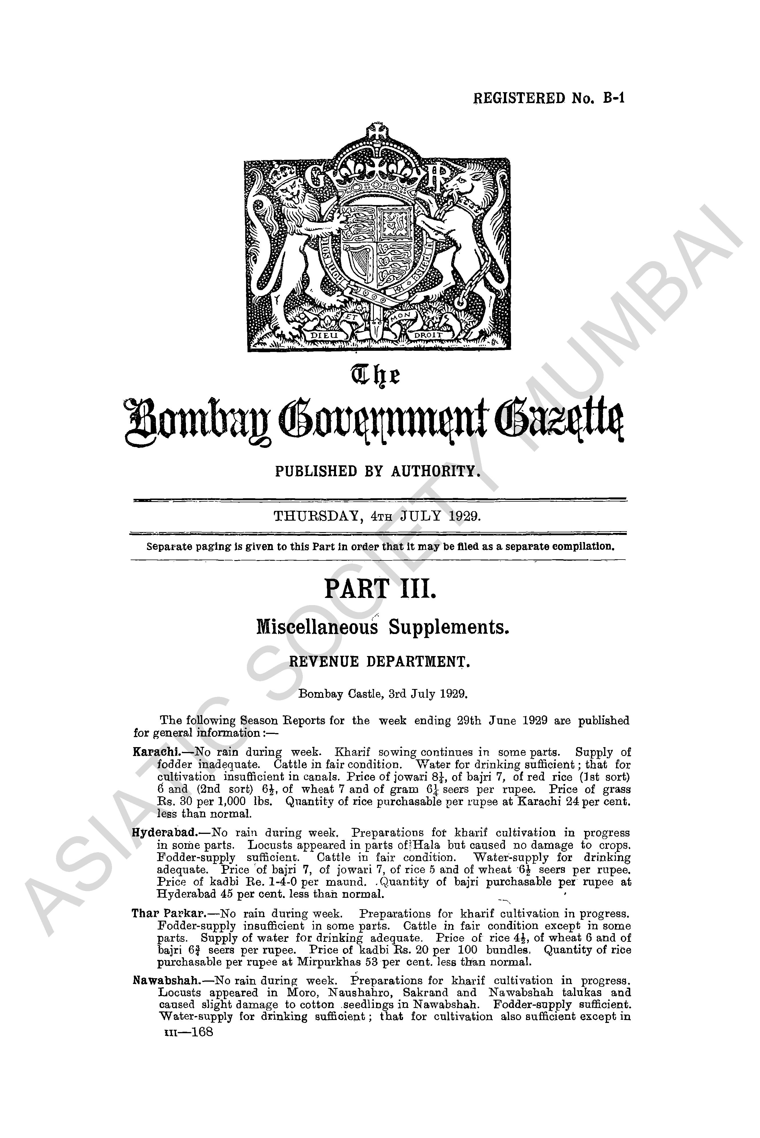 | Subject | : | Bombay (India : State) - periodicals, India - Bombay (state) |
