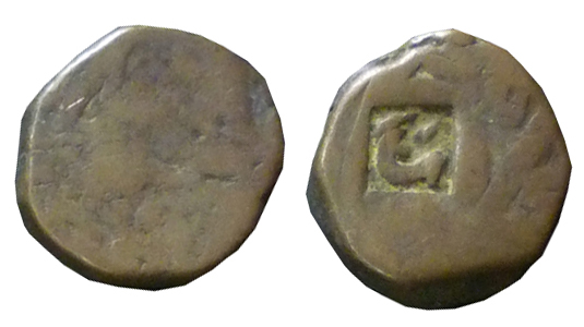 • Princely State: Unidentified, Copper, 21x20mm, 16.78gm