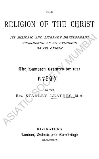 The Religion of the Christ: Its Historic and Literary D ...
