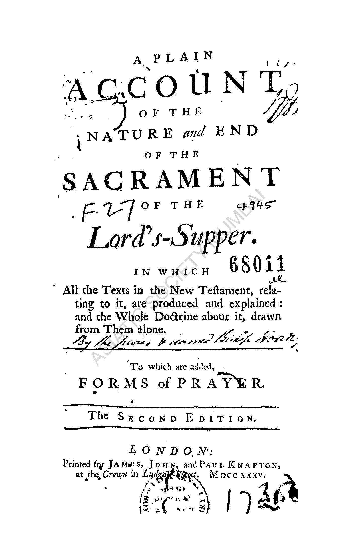 A Plain Account of the Nature and End of the Sacrament ...