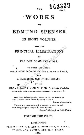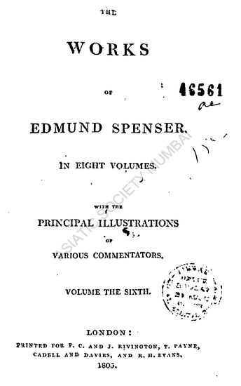 The Works of Edmund Spenser, in Eight Volumes.(Vol. VI)