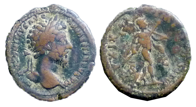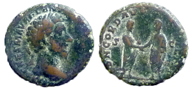 • Roman, Marcus Aurelius, 161-180 AD, Copper, 26x27mm, 11 ...