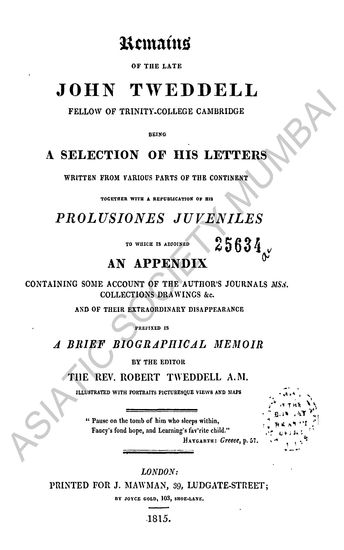 Remains of the Late John Tweddell; being a Selection of ...