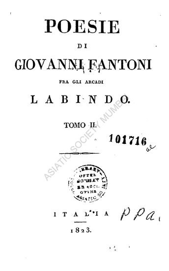 Poesie Di Fra Gli Arcadi Labindo; (Vol.II)