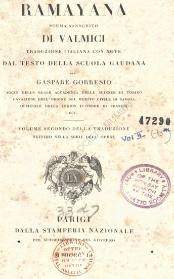 Ramayana Poema Sanscrito Di Valmici, Traduzione Italian ...