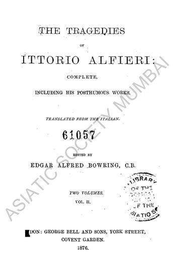 Alfieri, Vittorio; Bowring, Edgar Alfred (Ed.)