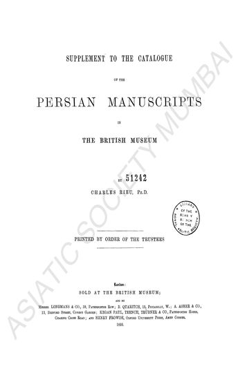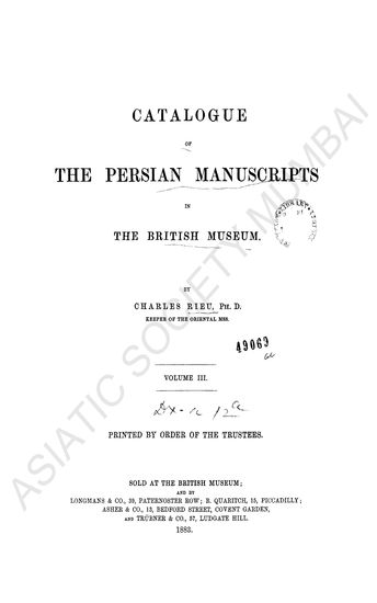 | Subject | : | Manuscripts, Persian Manuscripts Great Britain England--London Persian literature |