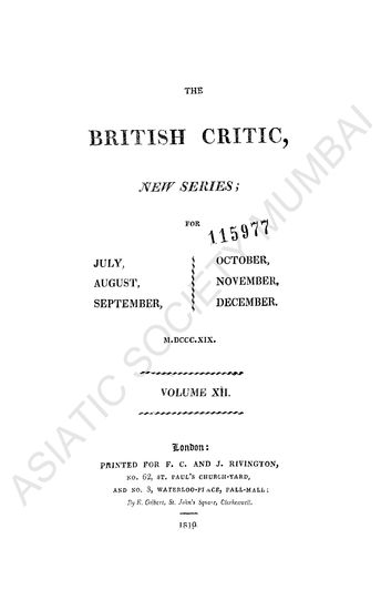 | Subject | : | Theology Books Great Britain Religion Periodicals |