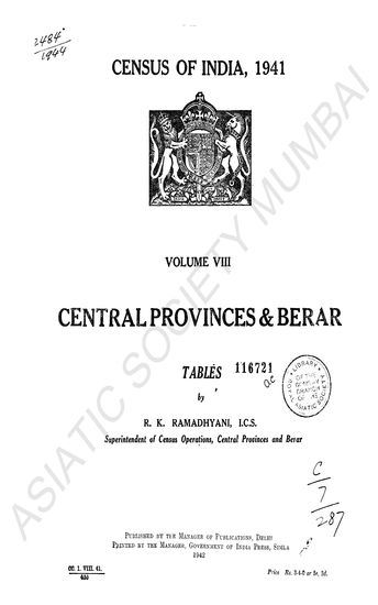 Census of India, 1941 Vol VIII Central Provinces and Bi ...