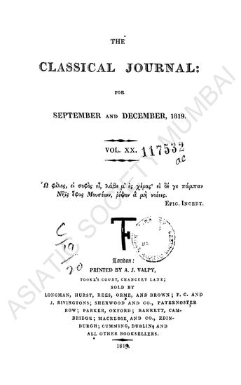• Classical Journal; for September and Decembar, 1819. Vo ...